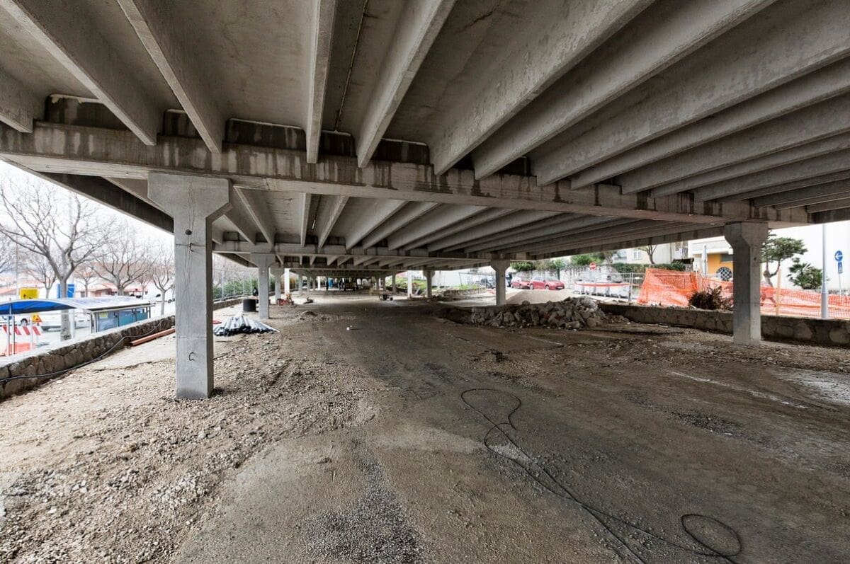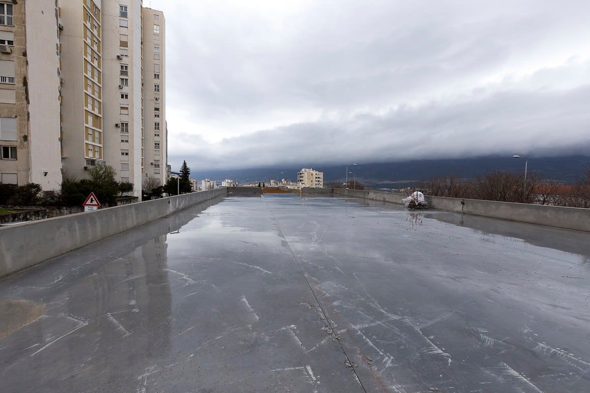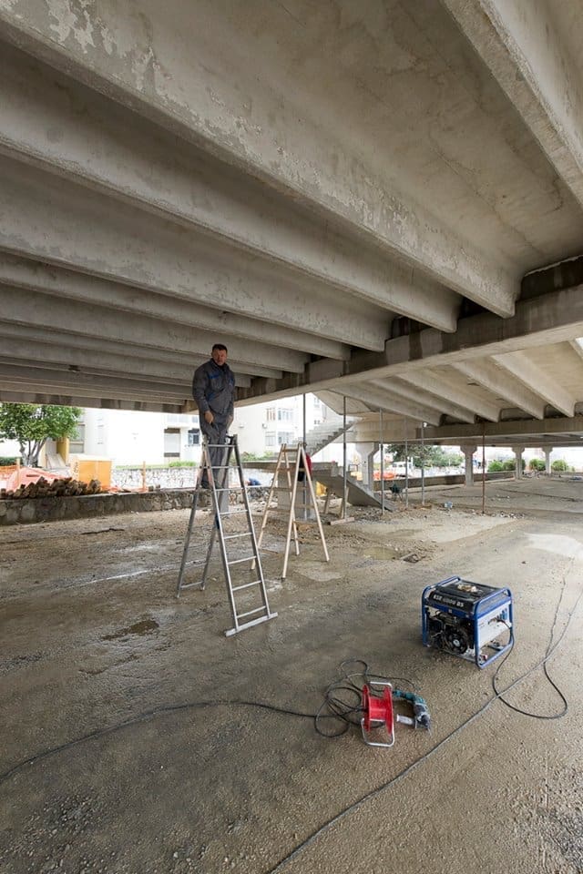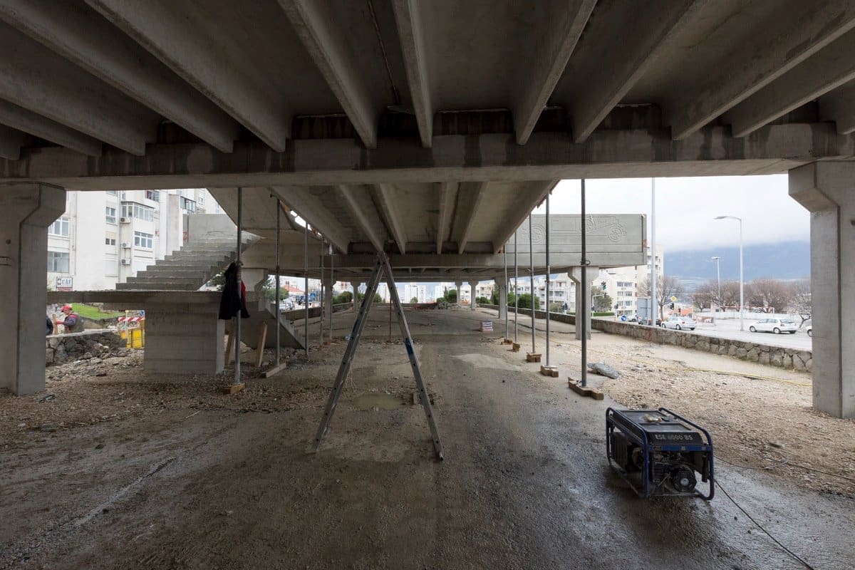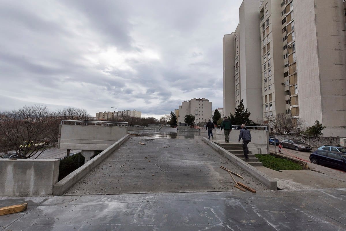 Izvedena je monolitna konstrukcija zapadne ulazne rampe na kat, monolitno je izvedeno ulazno stubište gornjeg dijela parkirališta.