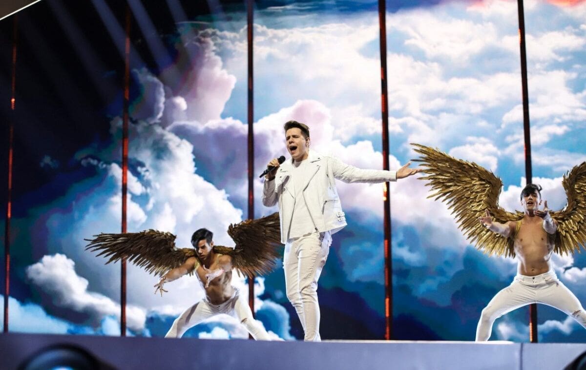 Potom će se na sceni pojaviti polugoli plesači Endi i Diego, koji će nositi zlatna krila na leđima i “pomoći” će Roku da se digne i uzdigne na nebo i dobije svoja zlatna krila. Vokalno jako dobro.