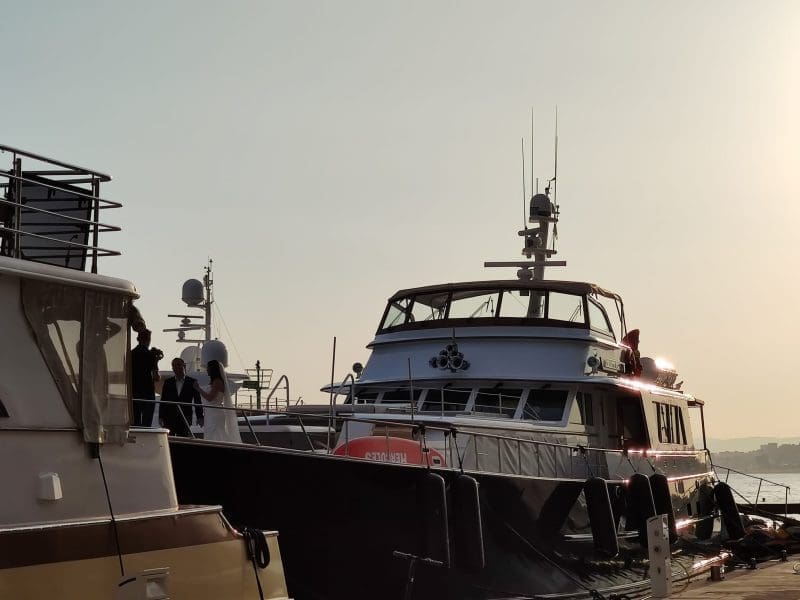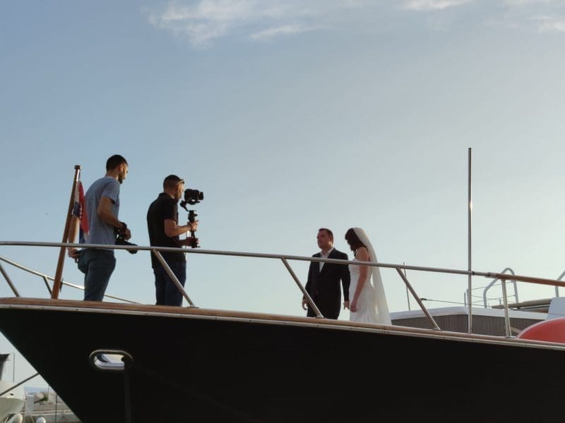 Samo nekoliko mjeseci nakon vjenčanja Skoko i njegova odabranica su ponovno obukli svadbeno odijelo i vjenčanicu. Naime, danas smo ih uhvatili na jahti u marini Le Meriden Lav kako poziraju ispred fotoaparata..