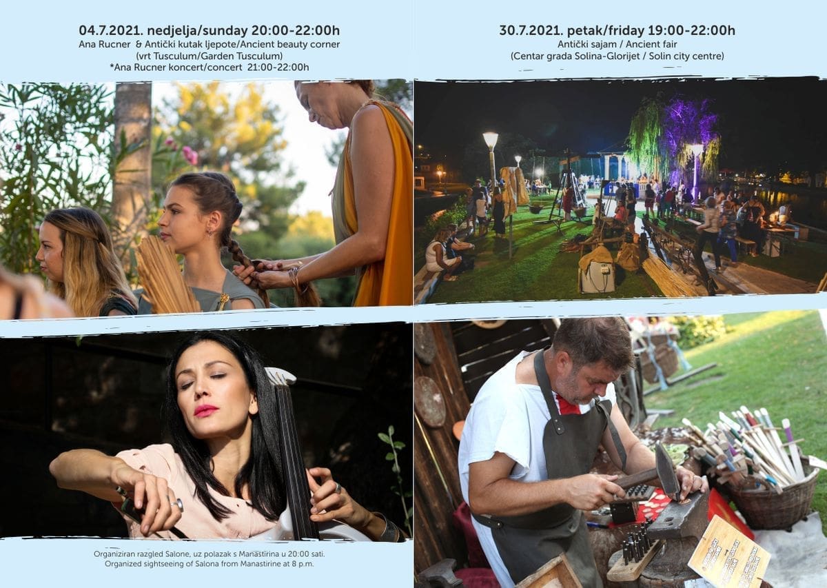 Ova manifestacija u organizaciji je Turističke zajednice grada Solina, kojom donose dašak antike u centar grada Solina uz sajam antičkih zanata -kovač lončar, drvorezbar i kamenoklesar, radionicu antičkih mozaika, izradu predmeta od antičkog stakla u izvedbi Muzeja antičkog stakla iz Zadra. Uz navedeno planiran je i glazbeni nastup Stipana Popovića i Ivane Kenk Kalebić (mandolina i gitara) od 21:00-21:30h.