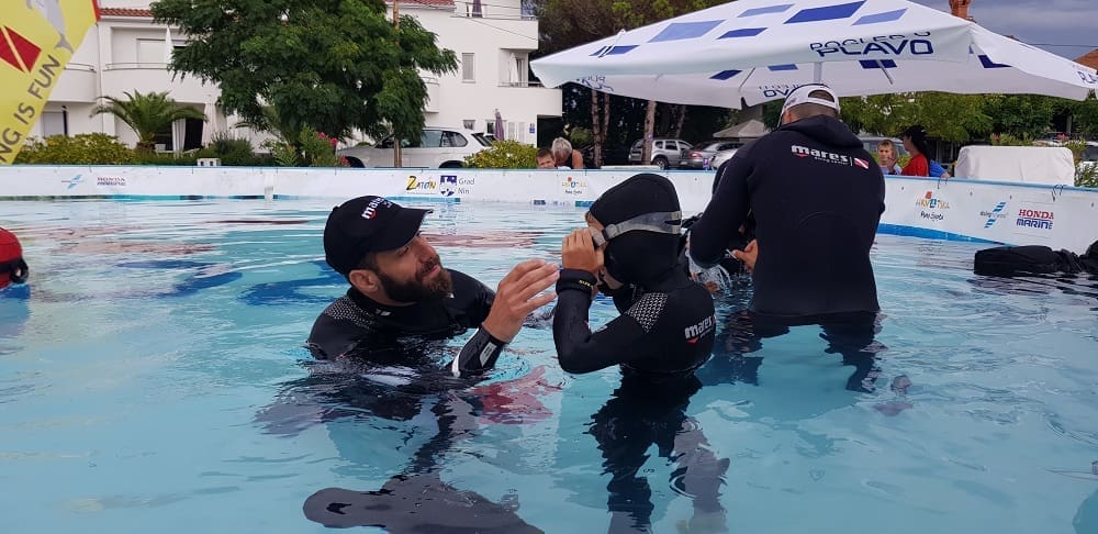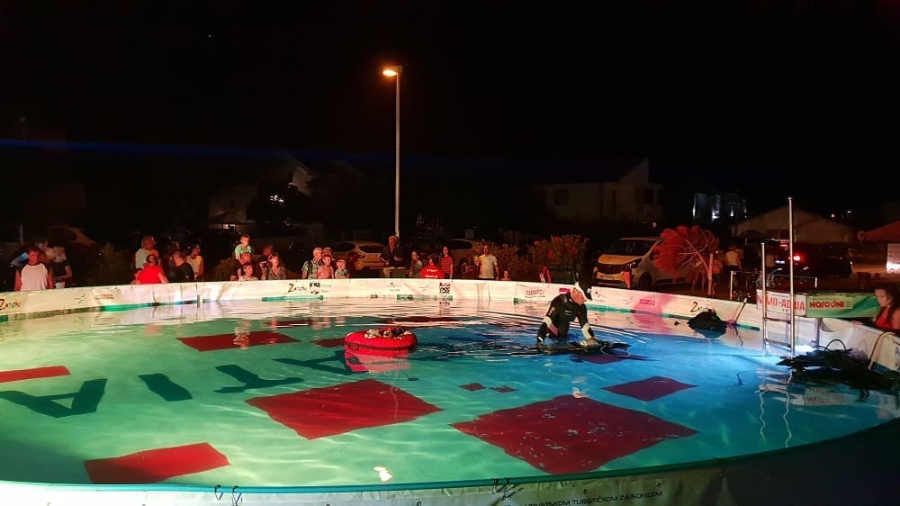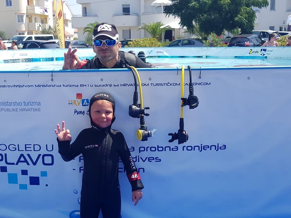Uigrana ronilačka ekipa projekta Pogled u plavo smjestila se na plaži Jaz u zadarskom Zatonu 13. i 14. kolovoza s prepoznatljivim montažnim bazenom te omogućila besplatne probne zarone za sve zainteresirane posjetitelje.