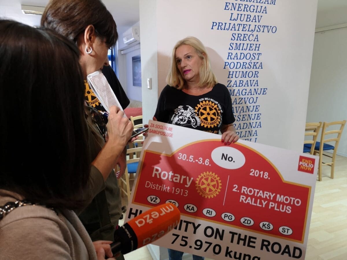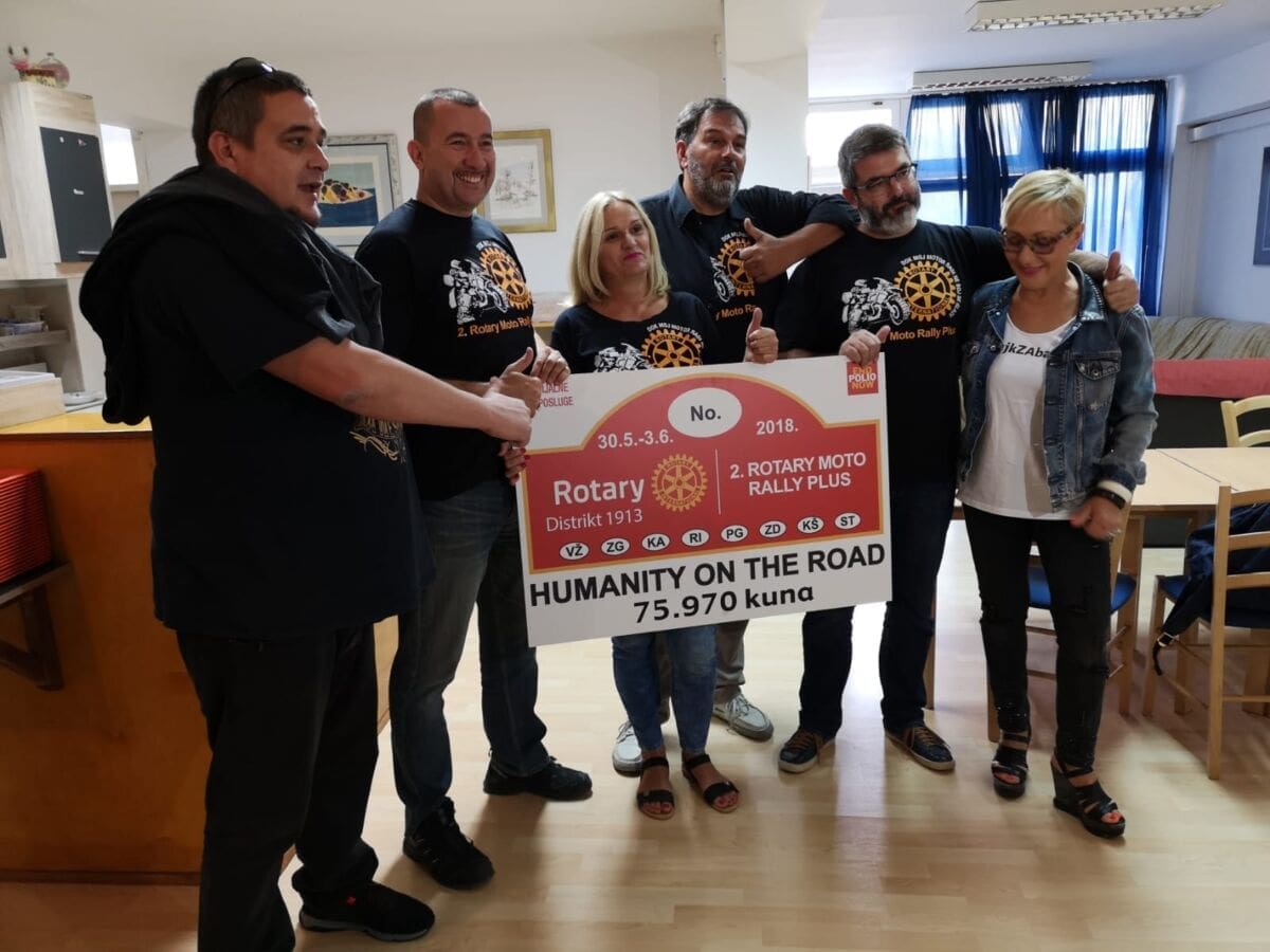 Uručenje donacije održano je povodom Međunarodnog dana borbe protiv siromaštva. Krajem svibnja i početkom lipnja od sjevera do juga Hrvatske vozio se humanitarni Rotary Moto Rally Plus u zajedničkoj organizaciji nekoliko hrvatskih Rotary i moto klubova. Start rallyja bio je u Varaždinu, a završetak u Splitu s osnovnim ciljem prikupljanja donacija za socijalne samoposluge u više gradova, te iskorjenjivanje dječje paralize u svijetu.
