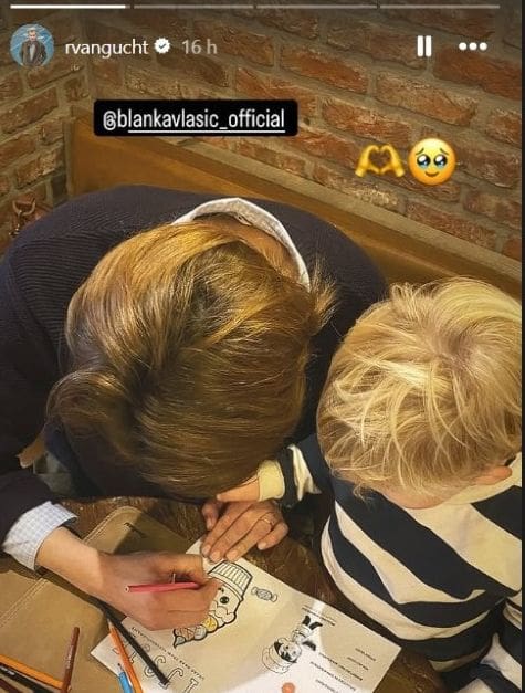 U Instagram priči je podijelio sliku Blanke s njihovim sinom Mondom kako boje bojanku. U opis je stavio emotikon srca i emotivnog smajlića.