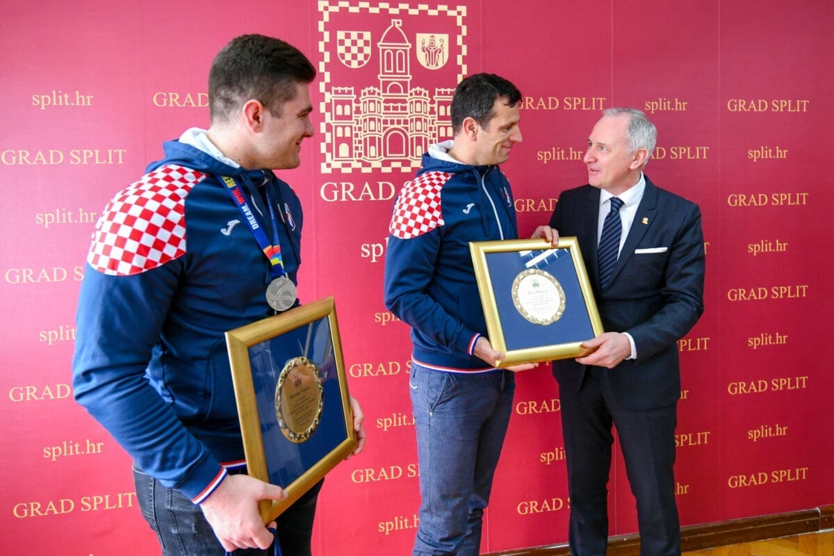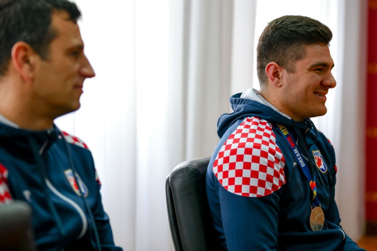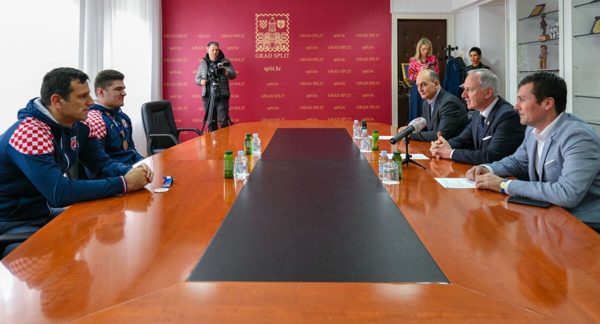 Na prijemu za rukometne reprezentativce bili su i pročelnik Službe društvenih djelatnosti Mate Omazić te voditelj Odsjeka za sport Igor Maretić, a kao uspomenu na osvojenu titulu gradonačelnik Andro Krstulović Opara uručio im je zlatni pjat s posvetom.