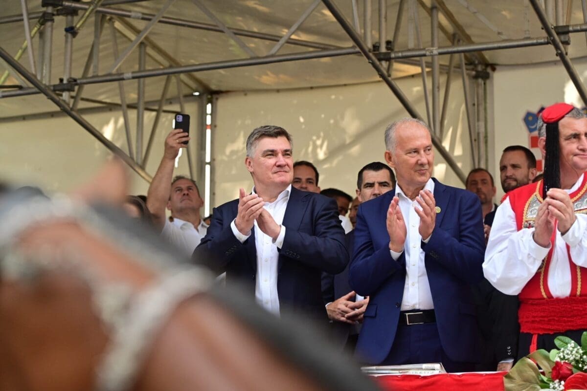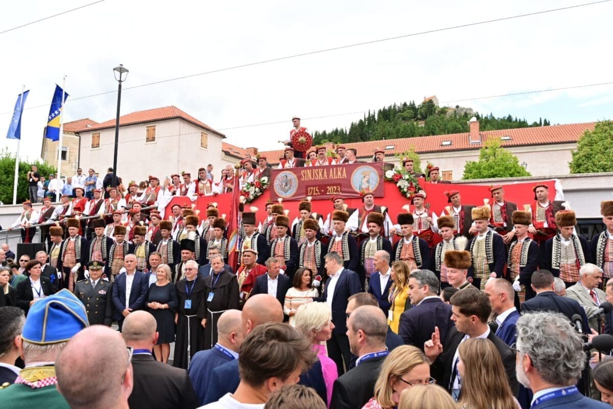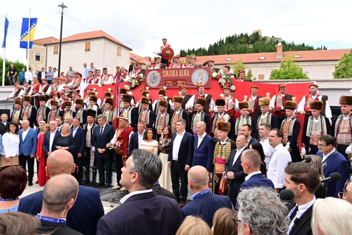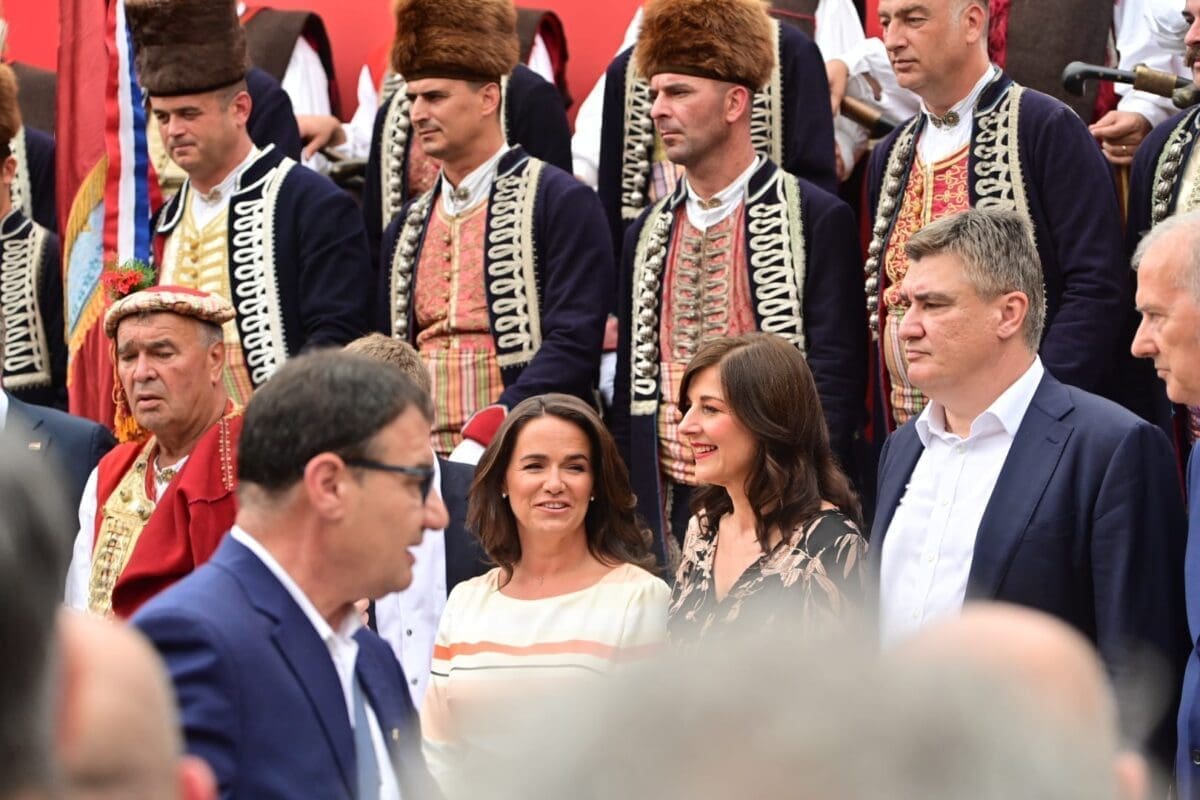 Predsjednik Republike Zoran Milanović na Alku je došao u društvu supruge Sanje Musić Milanović i s predsjednice Mađarske Katlin Novák koja je zbog Sinjske alke došla u radni posjet Republici Hrvatskoj.