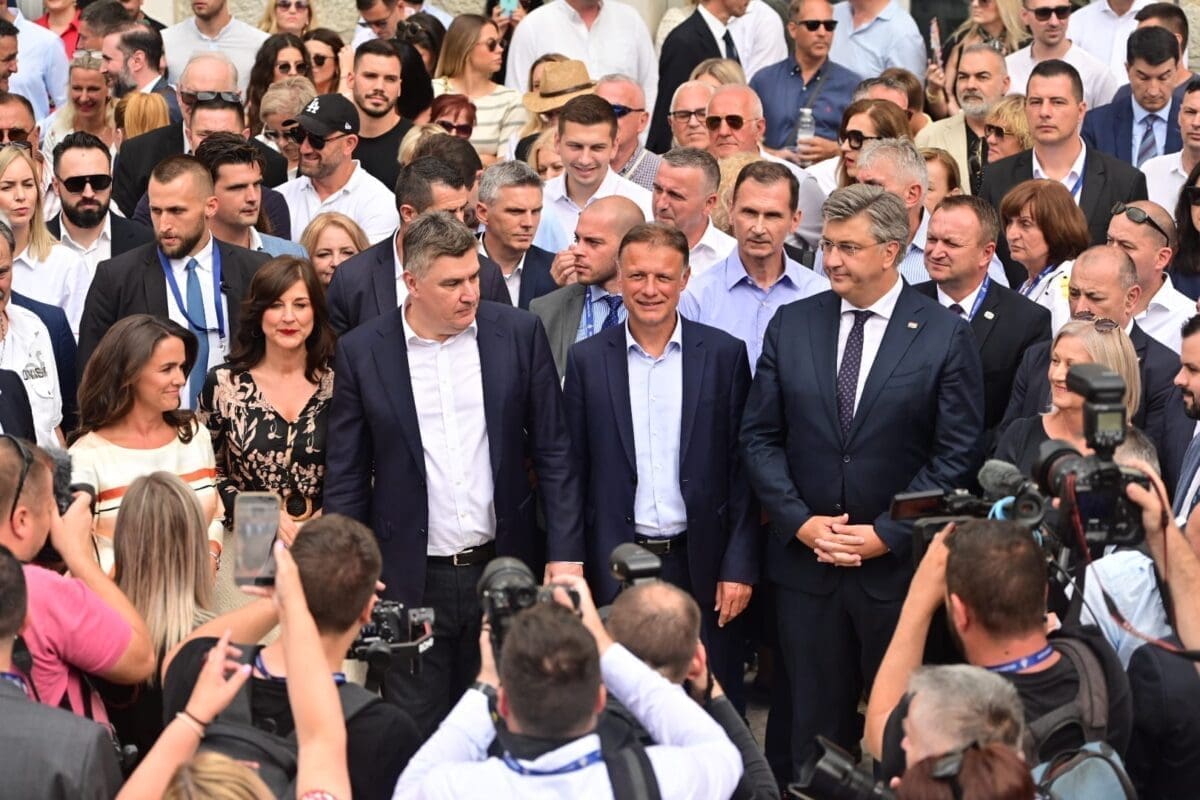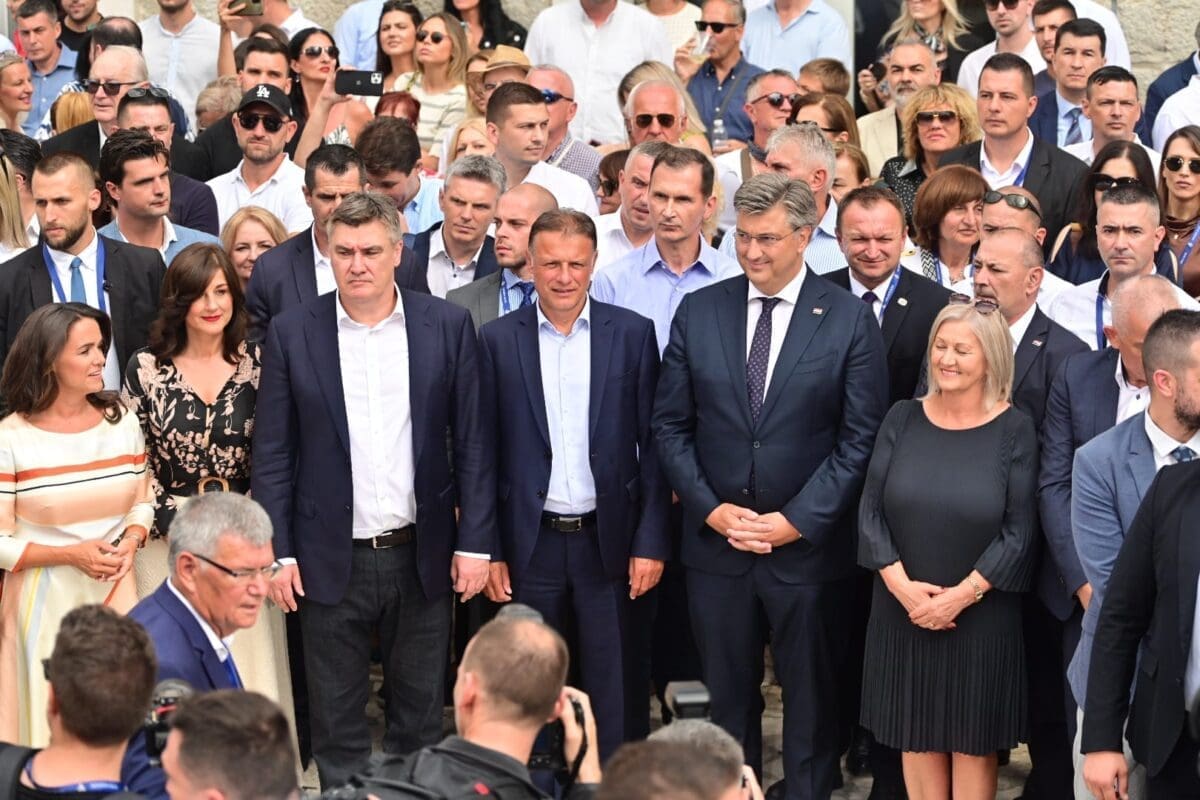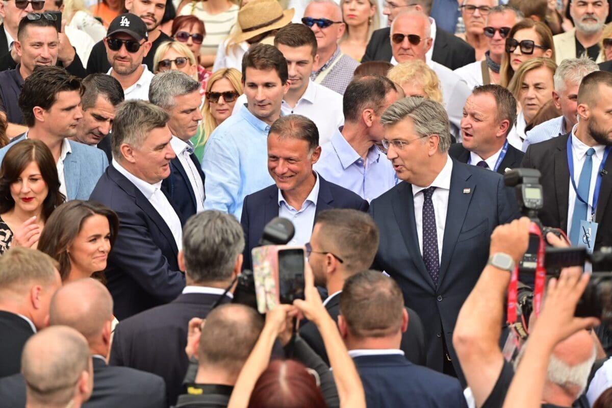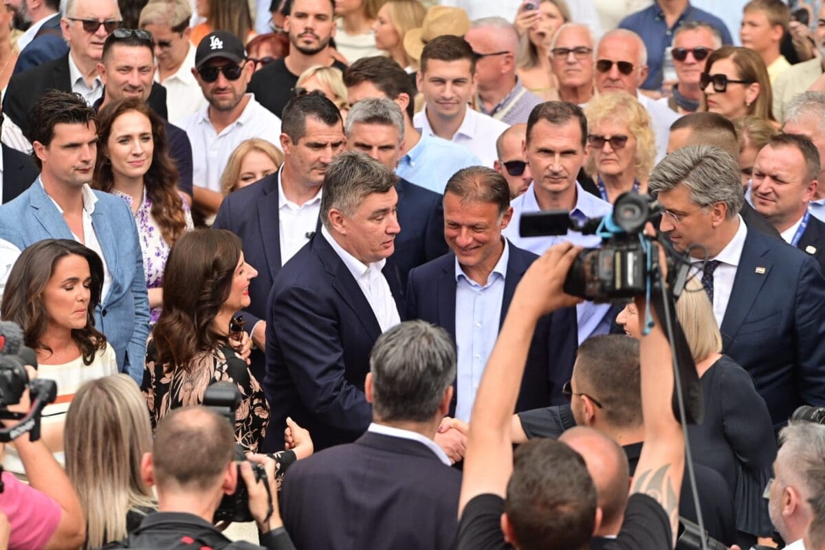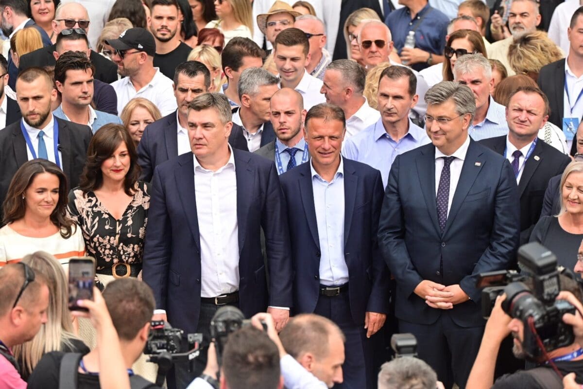 Prigoda je to bila za susret Plenkovića i Milanovića koji su, čini se, ovom prilikom sve nesuglasice stavili po strani i rukovali se. Pozirali su fotografima, a između njih se smjestio Jandroković.