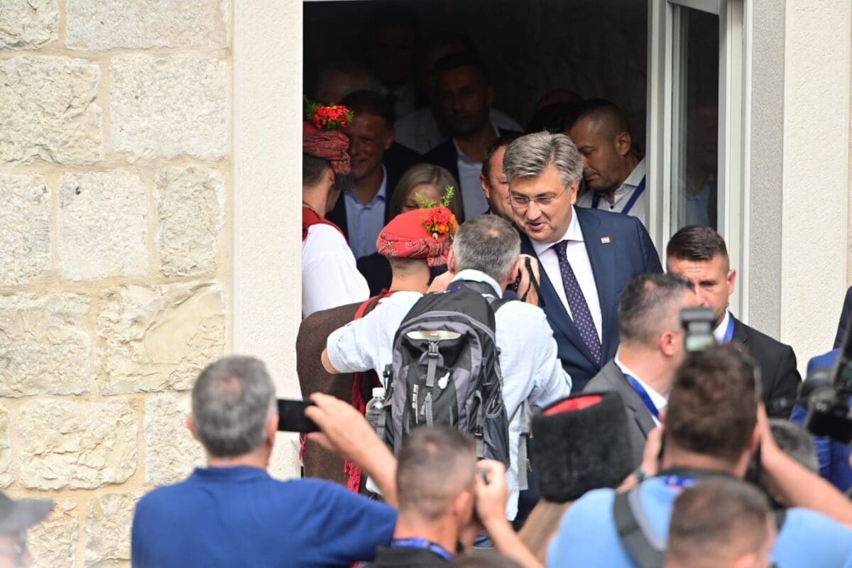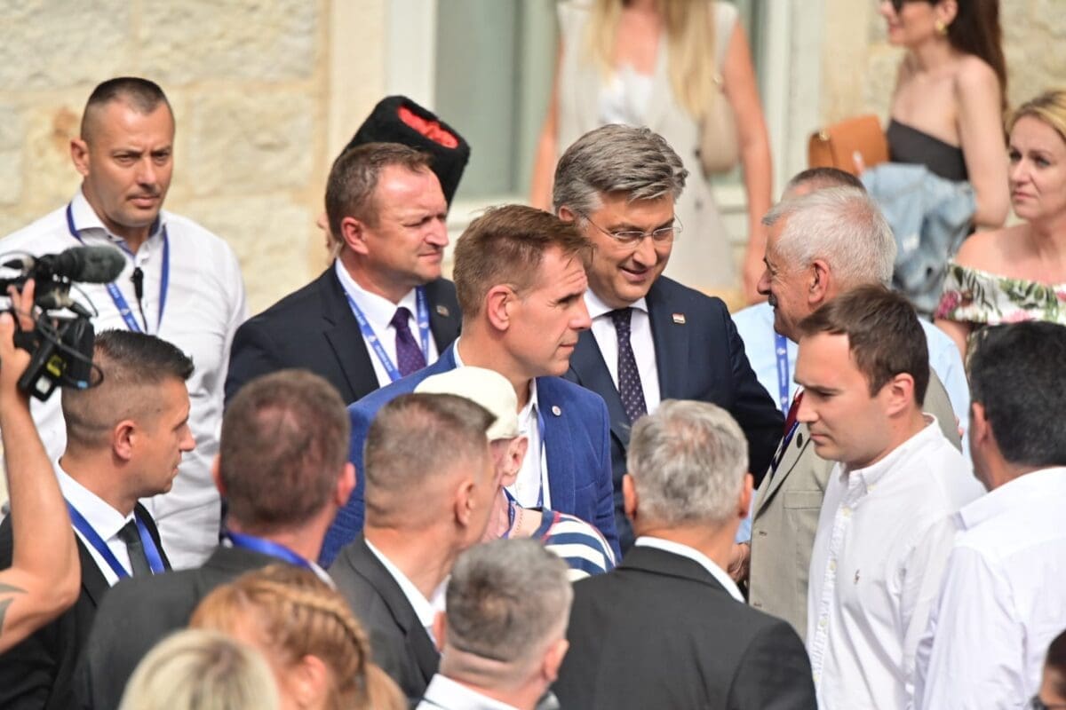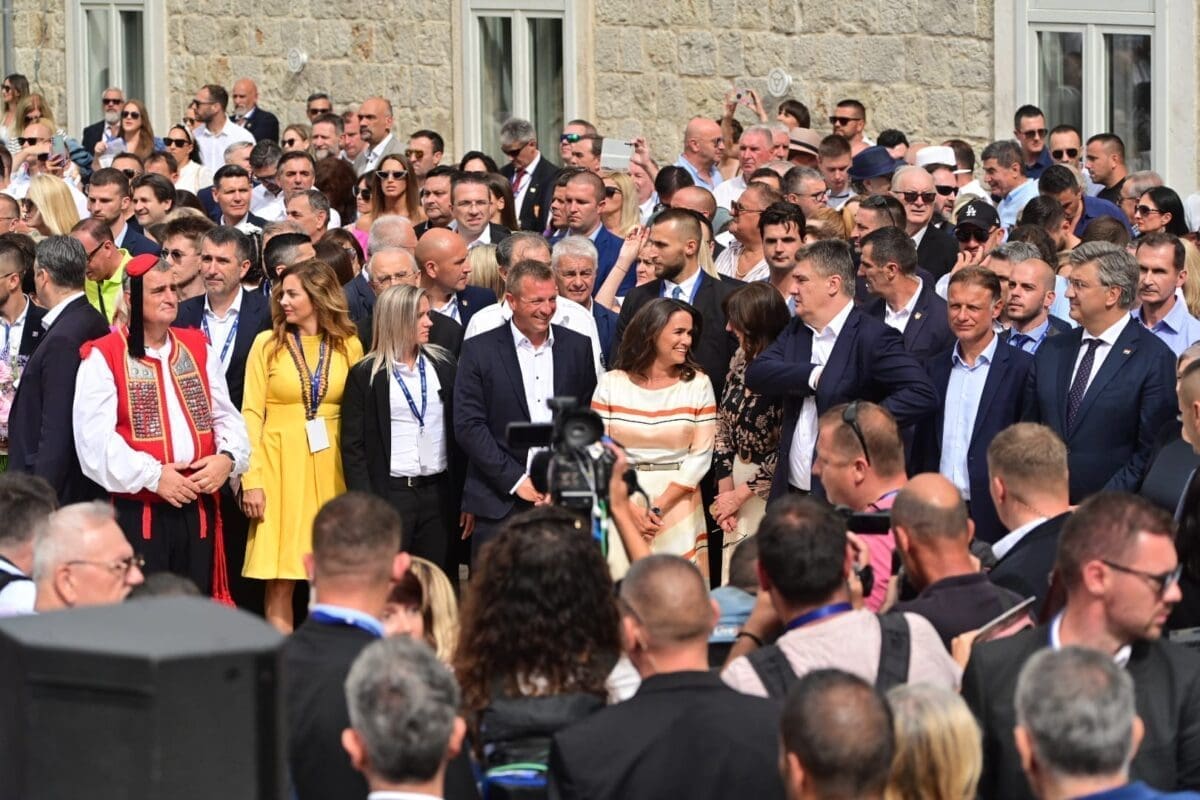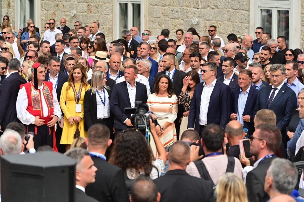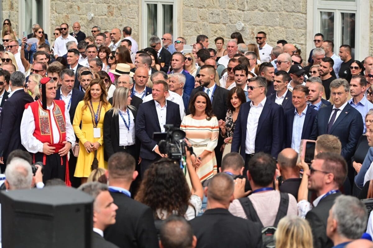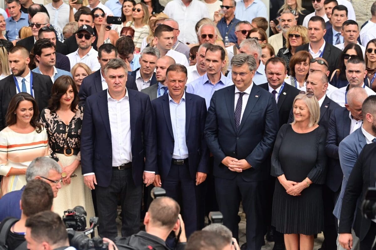Prigoda je to bila za susret Plenkovića i Milanovića koji su, čini se, ovom prilikom sve nesuglasice stavili po strani i rukovali se. Pozirali su fotografima, a između njih se smjestio Jandroković.