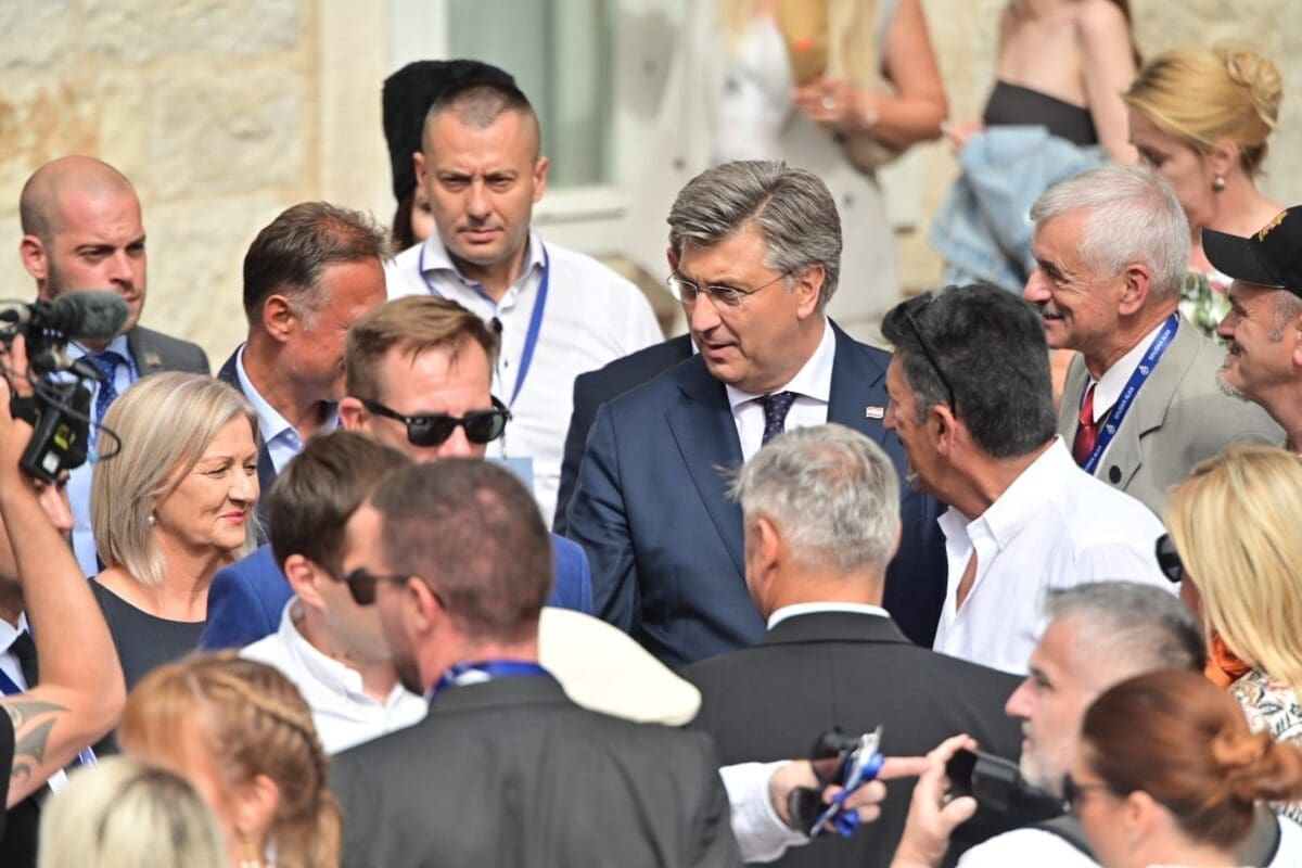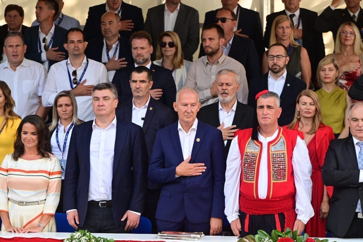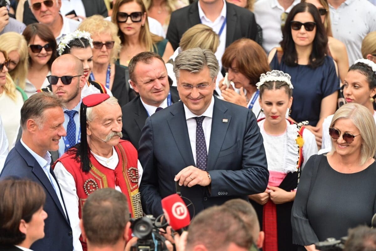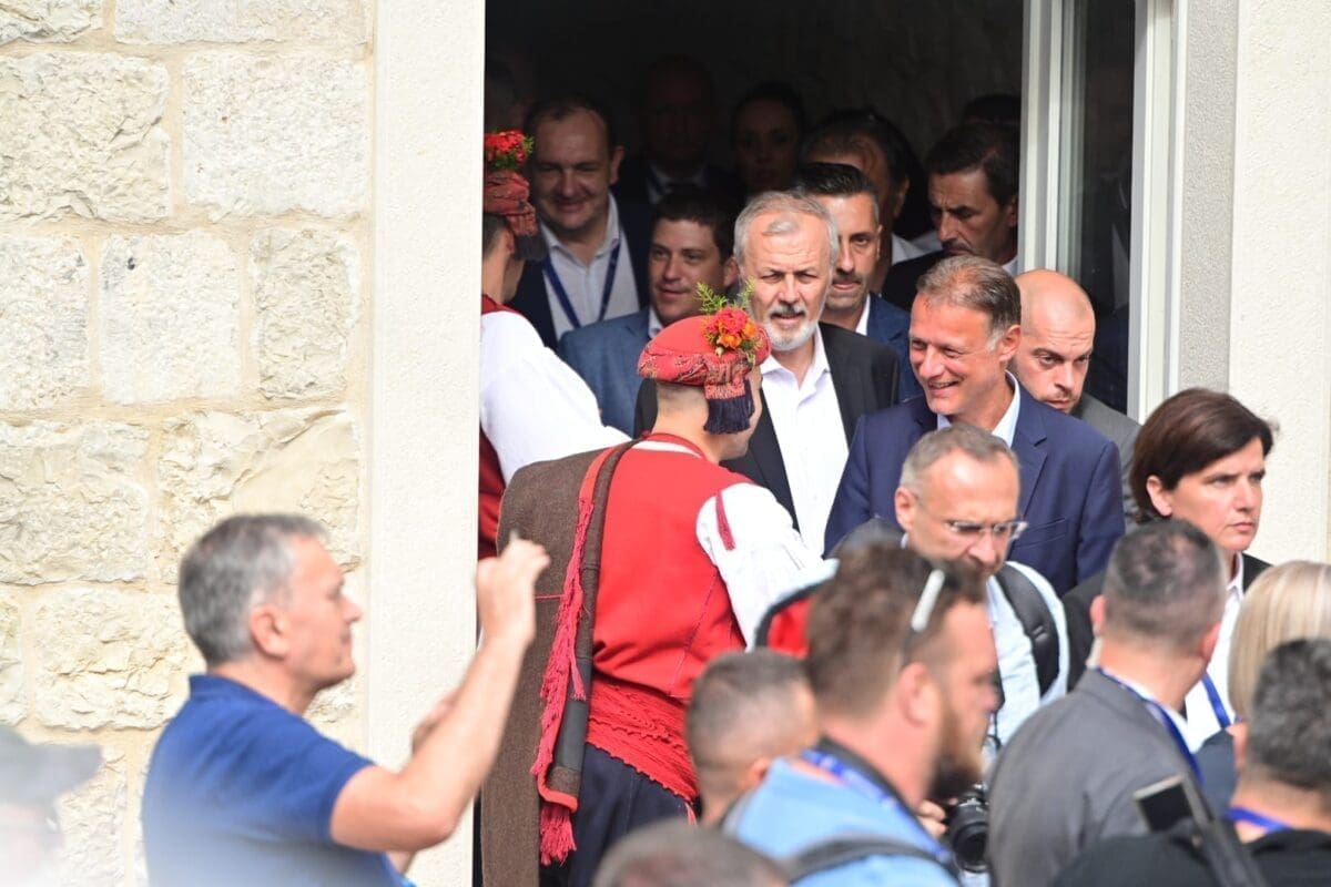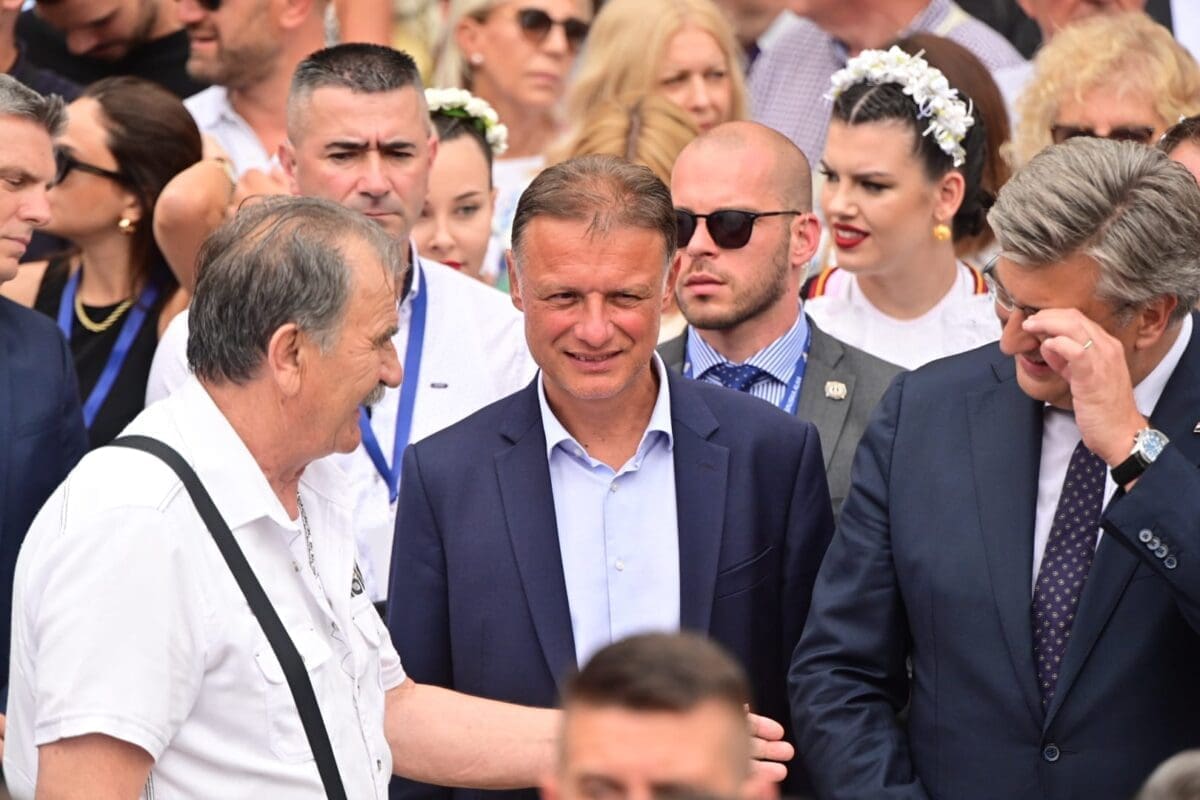 Prigoda je to bila za susret Plenkovića i Milanovića koji su, čini se, ovom prilikom sve nesuglasice stavili po strani i rukovali se. Pozirali su fotografima, a između njih se smjestio Jandroković.