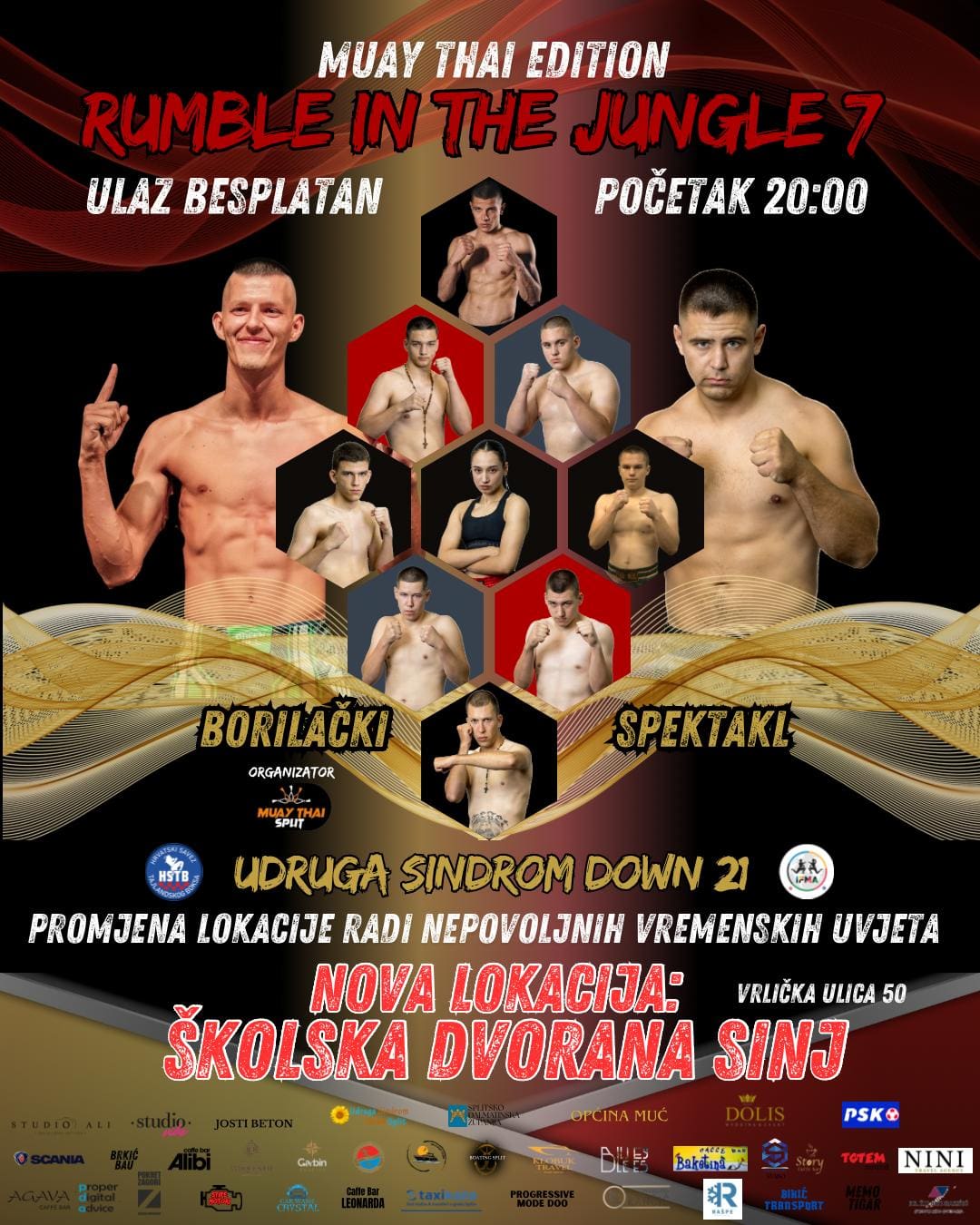 U subotu, 26. srpnja, s početkom u 20 sati, Neorić Sinj postaje poprište jedne od najuzbudljivijih borilačkih priredbi u regiji – "Rumble in the Jungle 7 – Muaythai Edition". Događaj organizira Klub tajlandskog boksa Split, a na programu su uzbudljivi mečevi više od 20 boraca iz Hrvatske i susjednih zemalja. Naglašavamo da je došlo do promjene održavanja ovog događaja koji se prvotno trebao održati u Neoriću, ali je zbog najavljenog nevremena premješten u školsku dvoranu Sinj na adresi Vrlička 50.