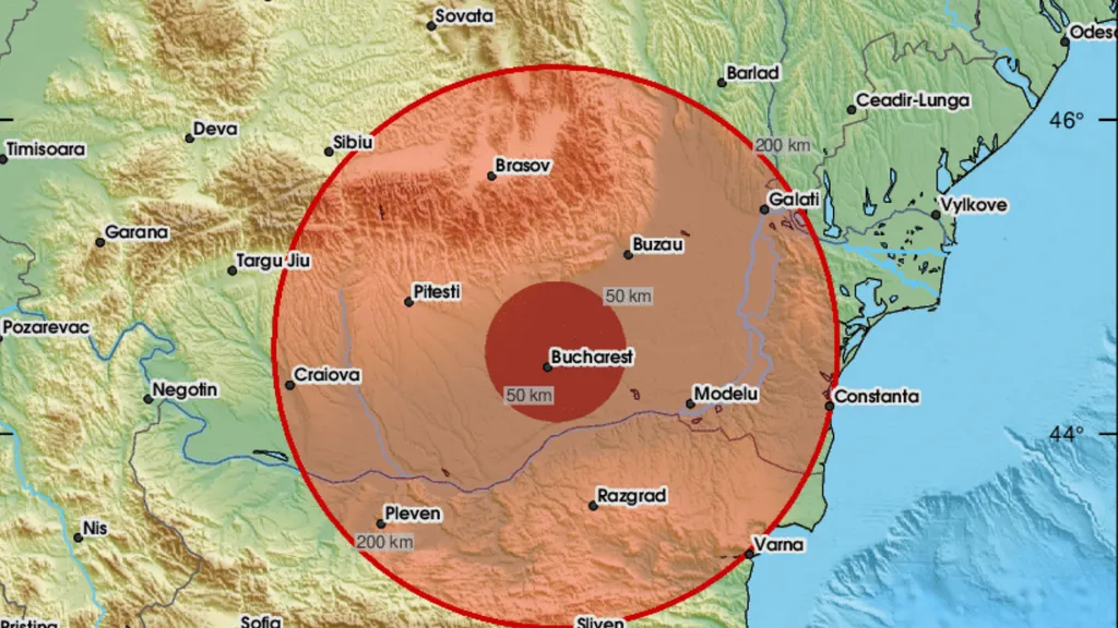Potres se dogodio na srednjoj dubini od 137 kilometara ispod epicentra u blizini Buzaua u Rumunjskoj, poslijepodne u ponedjeljak, u 17:40 po lokalnom vremenu.