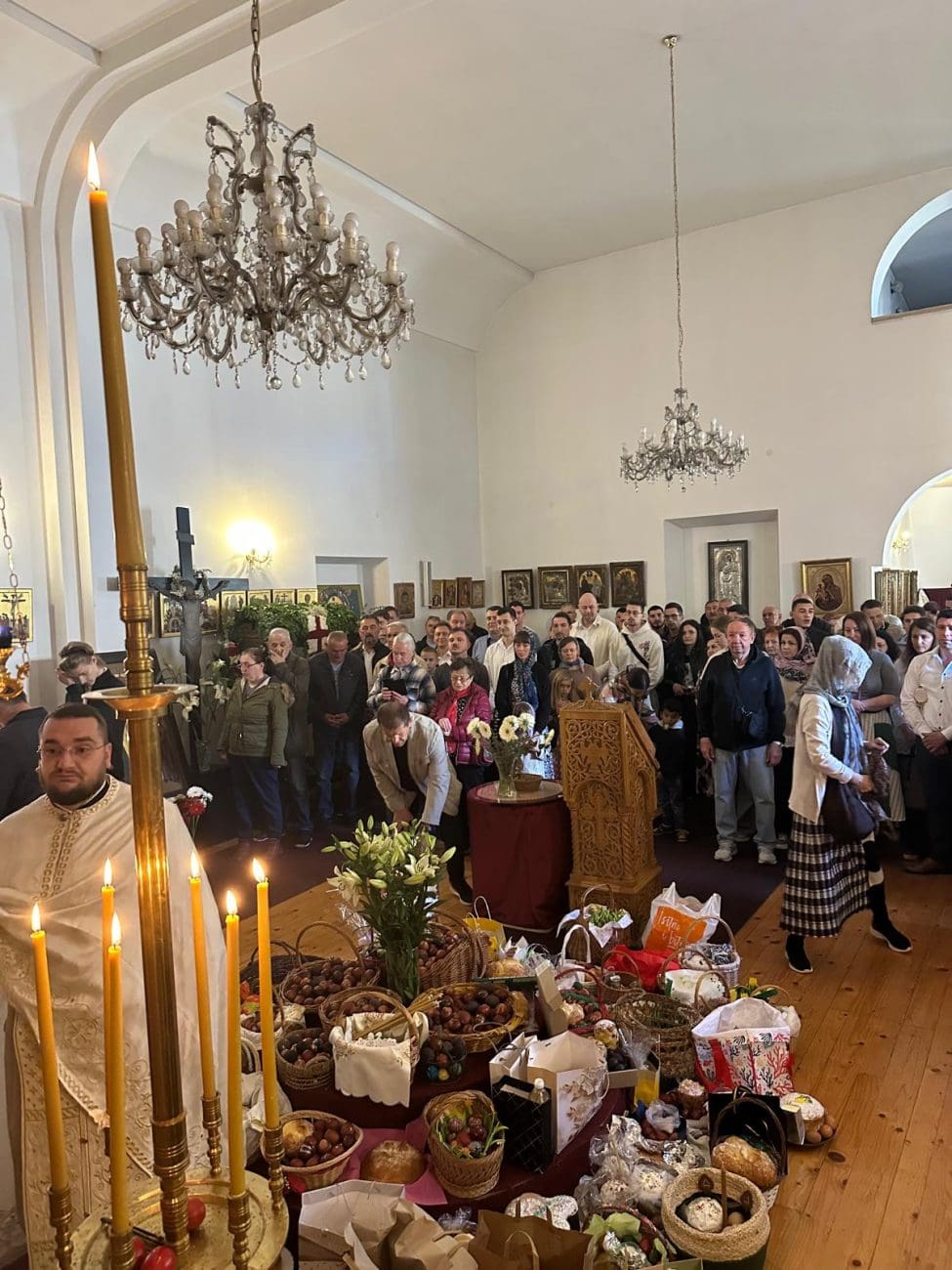 U prisustvu brojnih vjernika – među kojima su bili i pripadnici ruske i ukrajinske zajednice – svečana liturgija protekla je u duhu zajedništva, nade i uskrsne radosti.