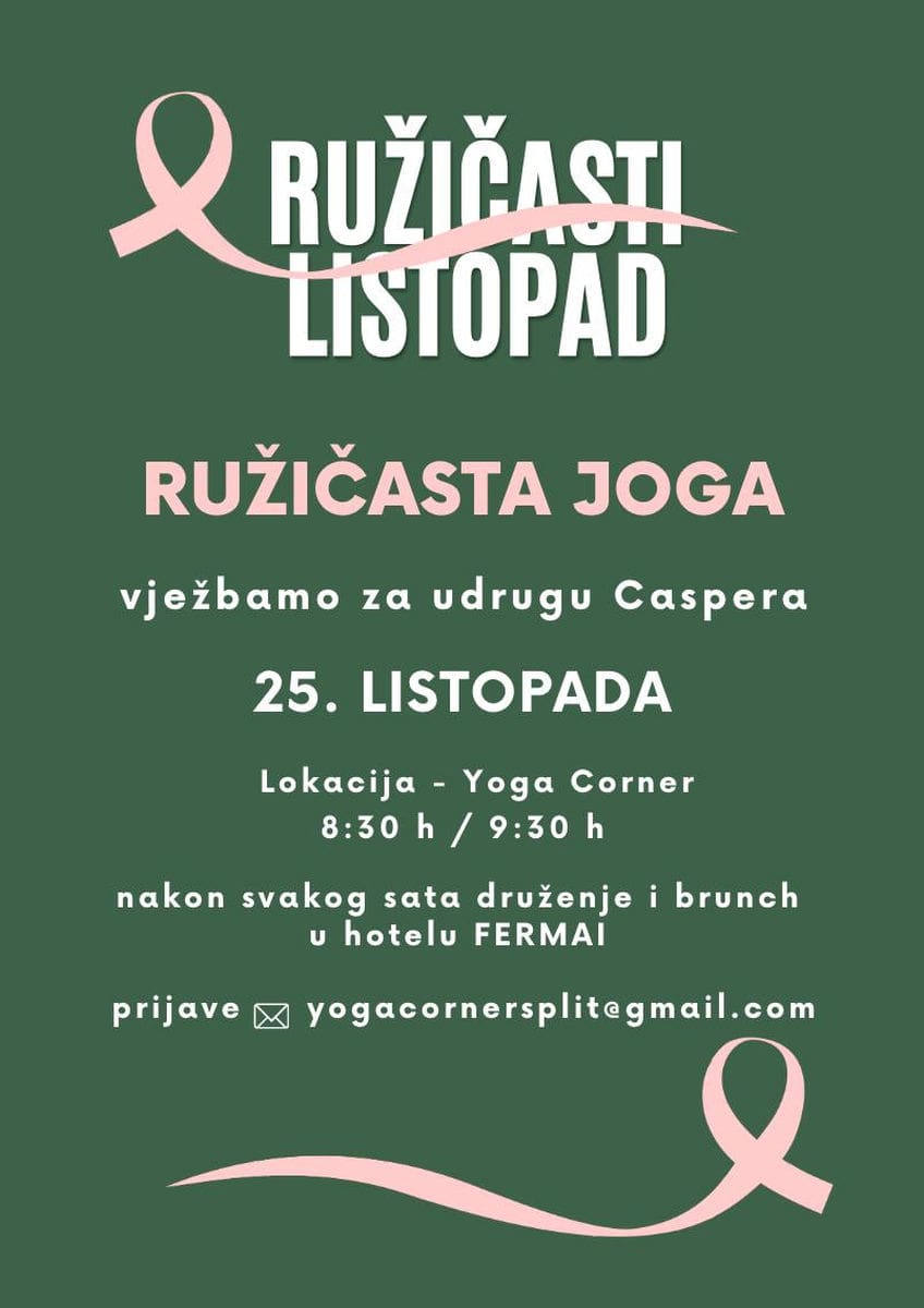 Kotizacija je 20 Eura, a prijave se šalju na yogacornersplit@gmail.com. Sva sredstva prikupljena od kotizacija bit će donirana udruzi Caspera, udruzi žena oboljelih i liječenih od karcinoma. Ovaj događaj nije samo prilika za fizičku aktivnost i brigu o vlastitom tijelu i duhu. Ovaj je dan ujedno i prilika da budemo dio šire priče o hrabrosti, suosjećanju i zajedničkoj borbi.
