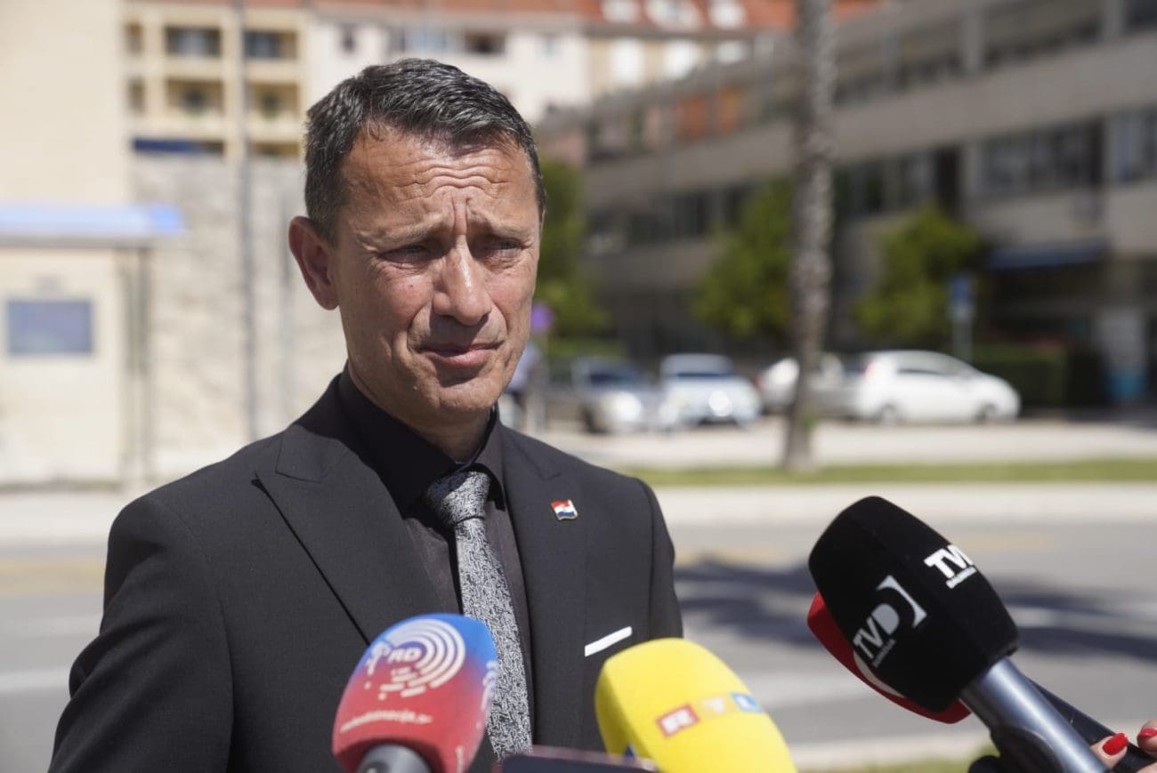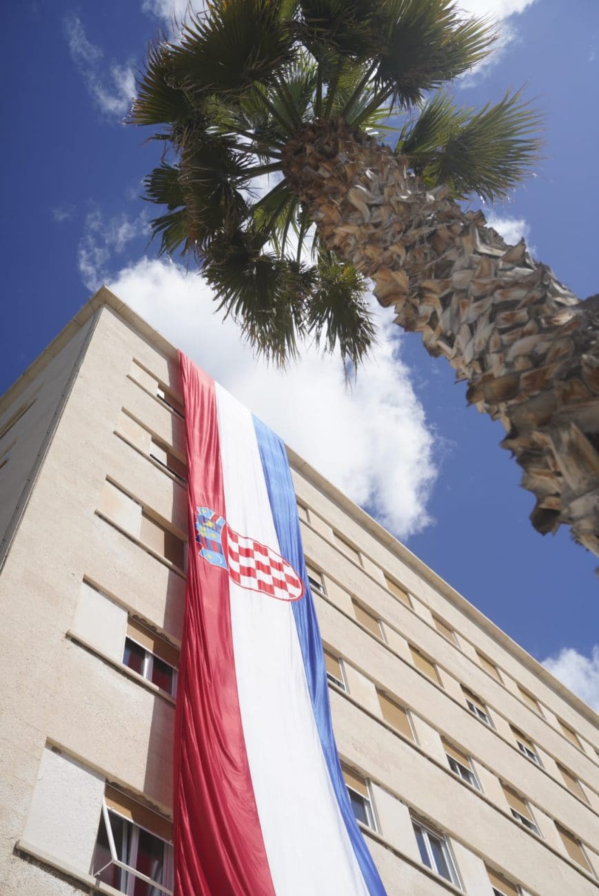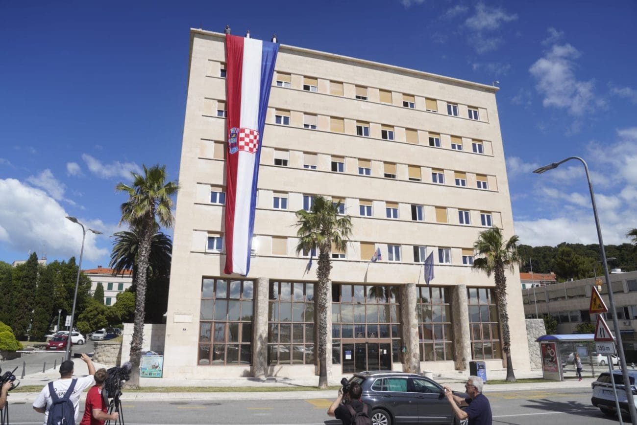 "Danas smo ovdje prigodom Dana državnosti i Dana branitelja grada Splita. Želim čestitati Dan državnosti svim građanima RH, ali i Dan branitelja Splita hrvatskim braniteljima iz Splita. Nalazimo se ispred Banovine da svjedočimo iznova činu spuštanja 22-metarske zastave, činu odavanja počasti i pijeteta svim žrtvama, prisjećanja kroz zastavu, kroz simbol domovine svih žrtava Domovinskog rata. Usput smo pustili pjesmu Hrvatska zastava da poprati čin spuštanja zastave. Prije toga smo pred Spomenikom braniteljima položili cvijeće i zapalili svijeće i na taj način odali pijetet svim braniteljima, civilima, ženama i djeci i svima stradalima tijekom Domovinskog rata", kazao je Ivan Turudić, predsjednik Hrvatskog društva logoraša.