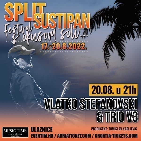 Vlatko Stefanovski i V3 Trio nastupit će 20. kolovoza u 21 sat na Sustipanu u Splitu, u sklopu festivala ''S okusom soli…''. Ulaznice za koncert mogu se kupiti preko sustava Eventim i Croatia Tickets te na ulazu na dan koncerta od 18 sati.