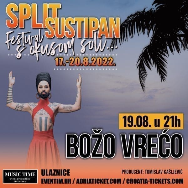 Božo Vrećo nastupit će 19. kolovoza u 21 sat na Sustipanu u Splitu, u sklopu festivala ''S okusom soli…''. Ulaznice za koncert mogu se kupiti preko sustava Eventim i Croatia Tickets te na ulazu na dan koncerta od 18 sati.