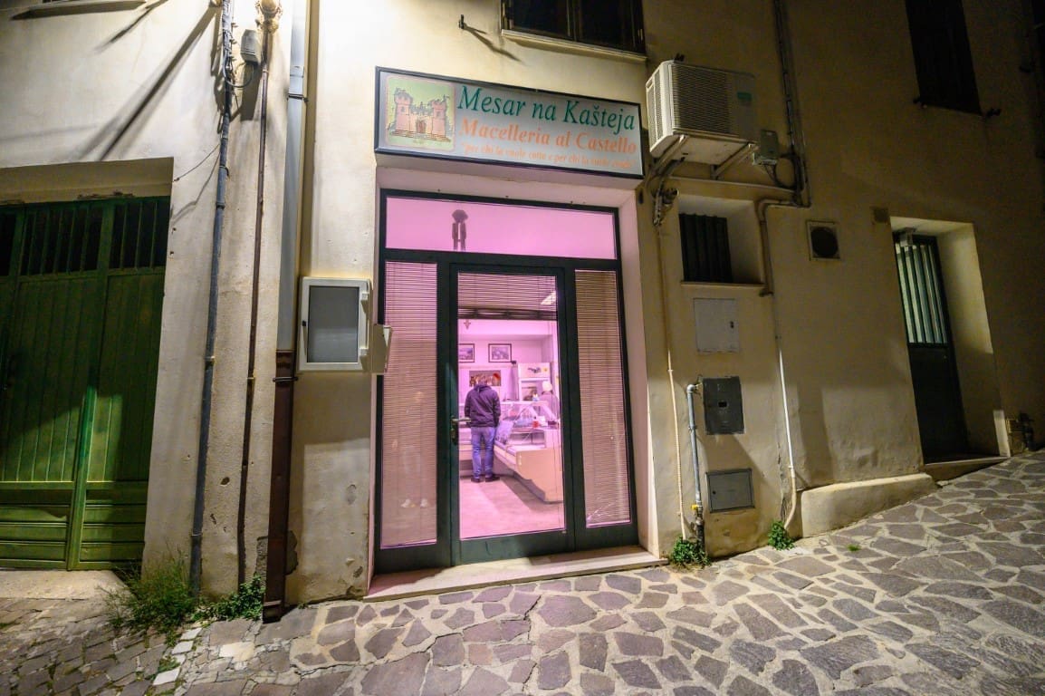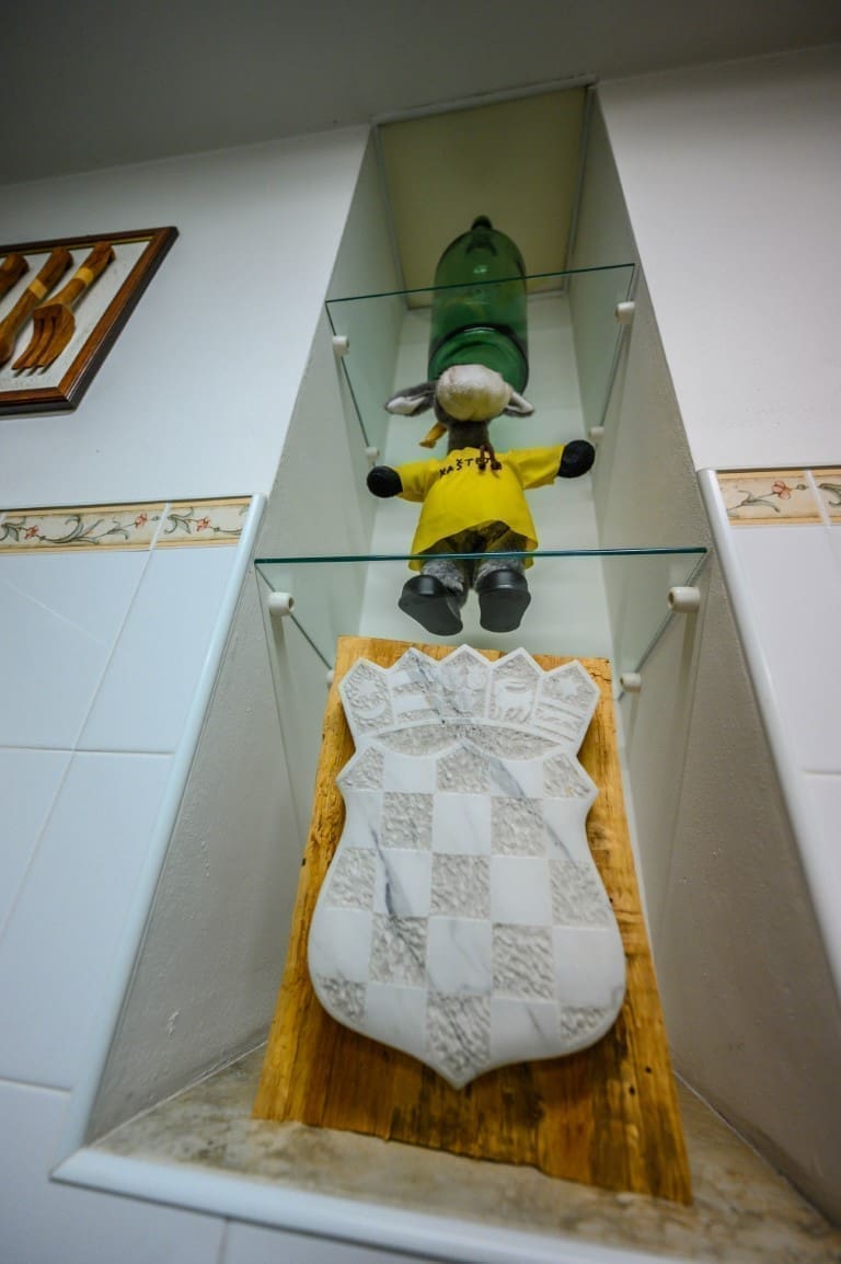 Nakon knjižnice posjetili smo i lokalnog mesara, a naziv radnje mu je “Mesar na Kašteja”. Ovdašnje kobasice suše se bez dima, one začinjenije podsjećaju na kulen. Naravno, uzimam koju za kušanje “s one bane mora”.