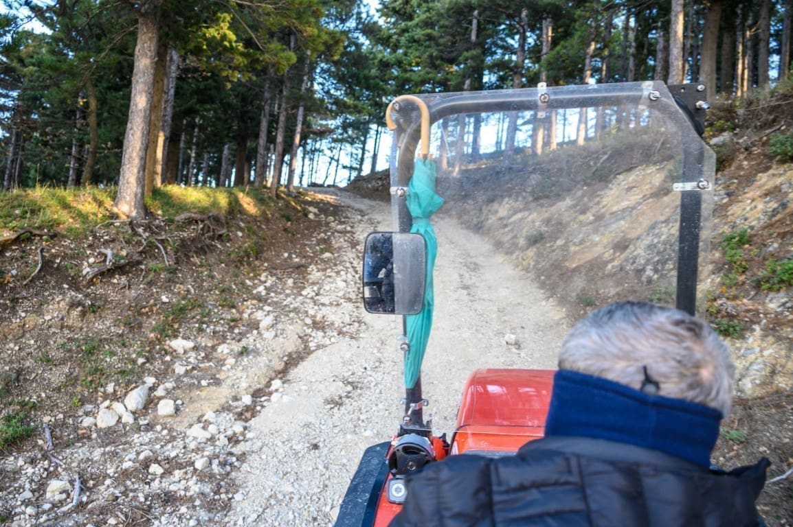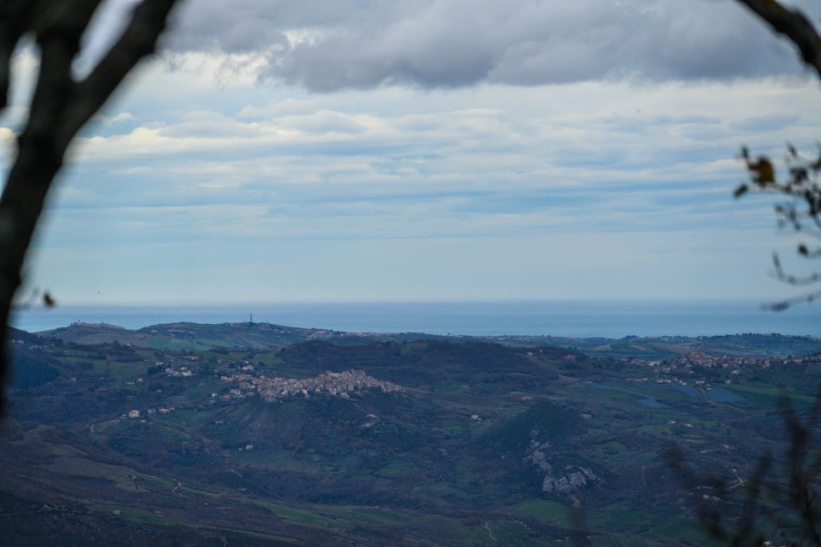 Nakon sunčanog ponedjeljka uslijedio je oblačan i kišovit utorak. No bila je to prava prilika testirati planinarsku opremu koju sam ponio, pa tako i troslojnu vjetrovku. Dobro sam se odjenuo, na leđa stavio foto opremu, te je uslijedilo moje prvo planinarsko iskustvo u Italiji, barem na kratko. Popeo sam se prvo na niži “Ždrila”, a potom i na viši “Munat”. S ovog brda iznad Mundimitra odakle pogled puca na sve strane - na veličanstvene planine susjednog Abruzza, uključujući Majellu. Sjajno se vidi susjedni gradić Montefalcone nel Sannio u kojem đaci Mundimitra pohađaju školu. Šumom dominira crnobor, ali ima dosta česmine. Ne pretjerano uređenom planinarskom stazom za oko sat vremena stižem do vrha, a mene sustiže kiša. Upravo zbog toga i rizika da ne smočim foto opremu nisam puno fotografirao, ali zabilježio sam osnovno. Spuštam se južnim padinama brda i konačno stižem do ceste koja vodi nazad u Mundimitar. Šetati bezbrižno, bez ikakve žurbe, po kiši, doduše u vjetrovci koja ne propušta ni kap kiše, iskustvo je koje bih preporučio svakome. U popodnevnim satima se vraćam u apartman na preobuku, a onda je uslijedio ponovni susret s Lorenzom.