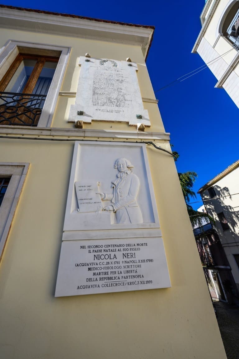 Na općinskoj zgradi je reljef Nikole Nere / Crnog (1761.–1799.) iz Kruča, profesora fiziologije na Medicinskome fakultetu Sveučilišta u Padovi. Kao pristaša republikanaca bio je uključen u političke događaje u vrijeme Partenopejske Republike 1799. u Napulju. Nakon obnove vlasti španjolskih Burbonaca Neri je pogubljen 3. XII. 1799., a pri odvođenju na gubilište uputio je posljednju poruku svojim sunarodnjacima: "Nemojte zabit naš lipi jezik".