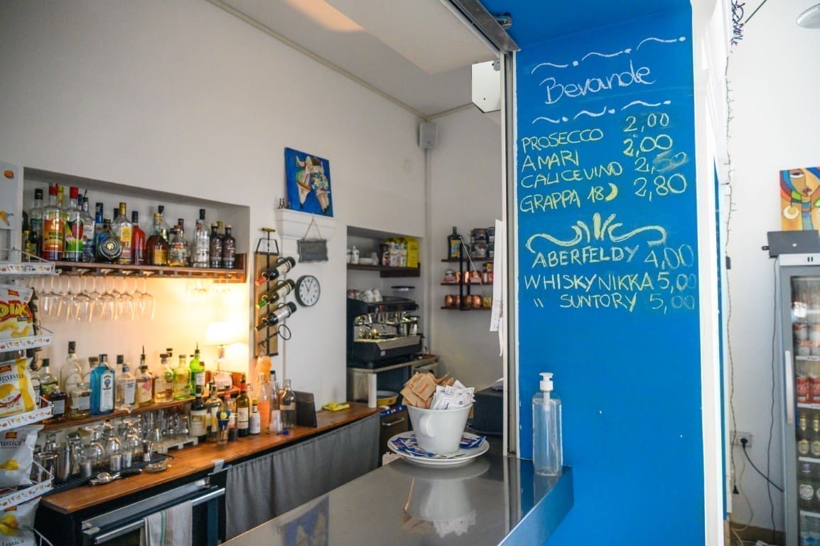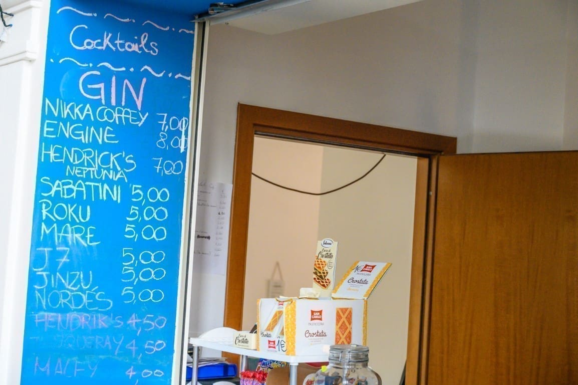 Unutra klasična mjesna gostionica sa stolovima i kartama na njima, a tu je i šank gdje možete naručiti pića od kave, preko sokova do alkohola. Cijene su pristupačne, kava je 1 euro.
