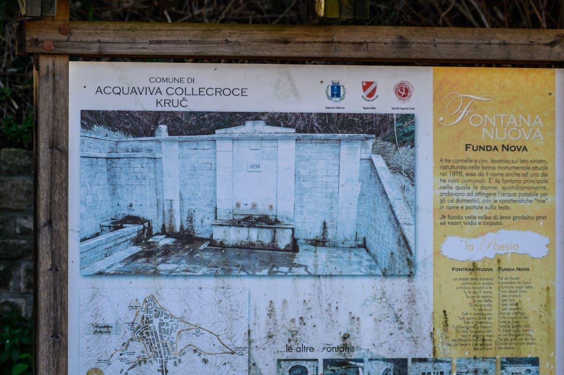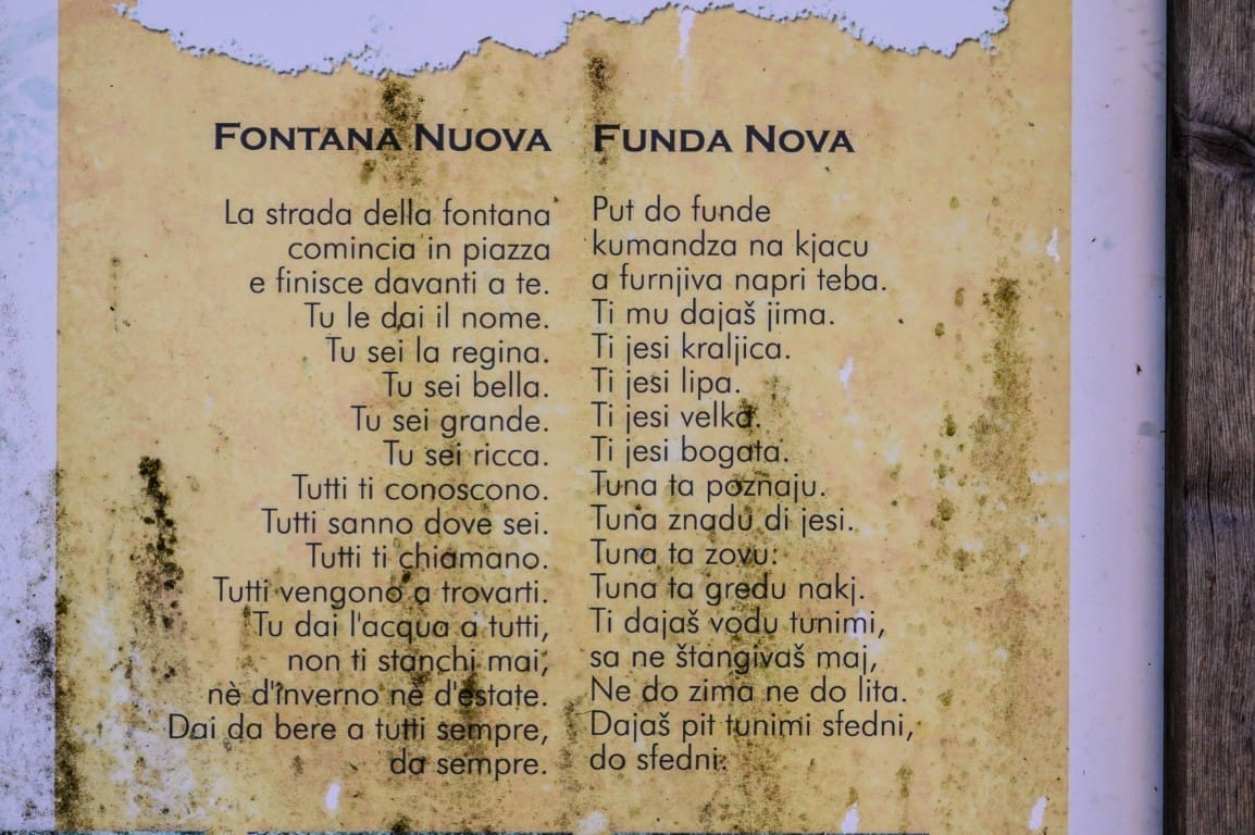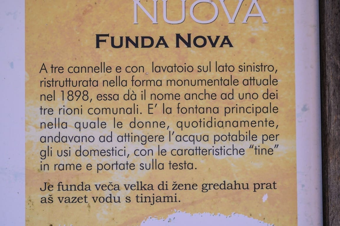 Fontana Nuova sagrađena je 1880. godine, na našu Funda nova, sa slavinama (na našu se kaže ‘s kanali’). Na pročelju općinske zgrade i danas stoji citat koji stanovnike podsjeća da ne zaborave jezik svojih pradjedova. On se i danas može čuti uđe li u bilo koji od lokalnih kafića.