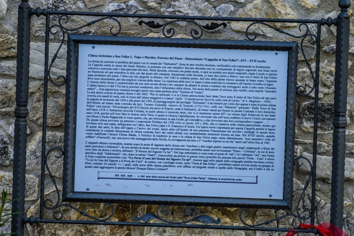 Jedan od tamošnjih mladića s kojim sam pričao, te me je iznenadio kako dobro govori hrvatski, kazao mi je da je studirao u Splitu i radio u Hrvatskoj. Kasnije samo posjetio i Filić (San Felice del Molise) čije konture krasi vodotoranj na vrhu grada.