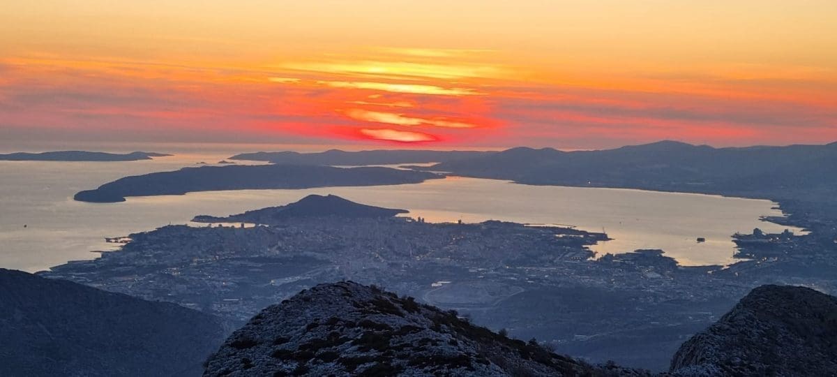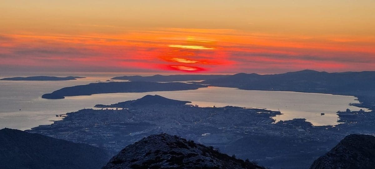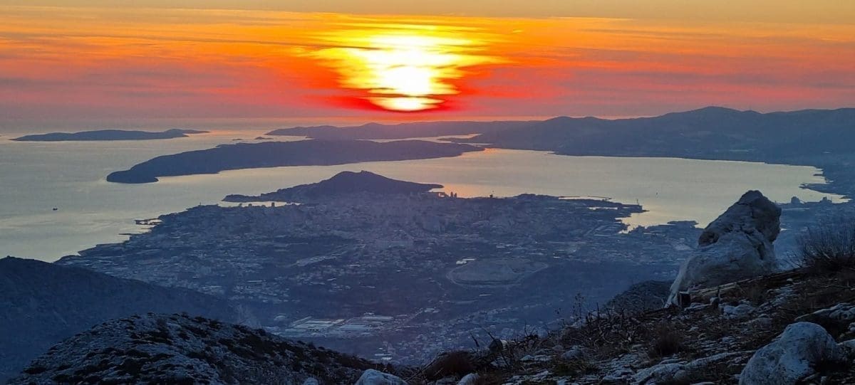 Mi vam donosimo predivne priziore smiraja dana snimljenog s Mosora, a s pogledom na splitski poluotok.