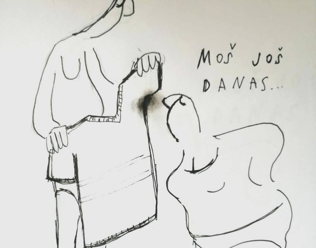 Upravo je takvu situaciju na svom novom crtežu opisala Tisja Kljaković i ponovno ubola "u sridu". Naime, On drži majicu kratkih rukava koja "vonja", a Ona mu govori "Moš još danas".