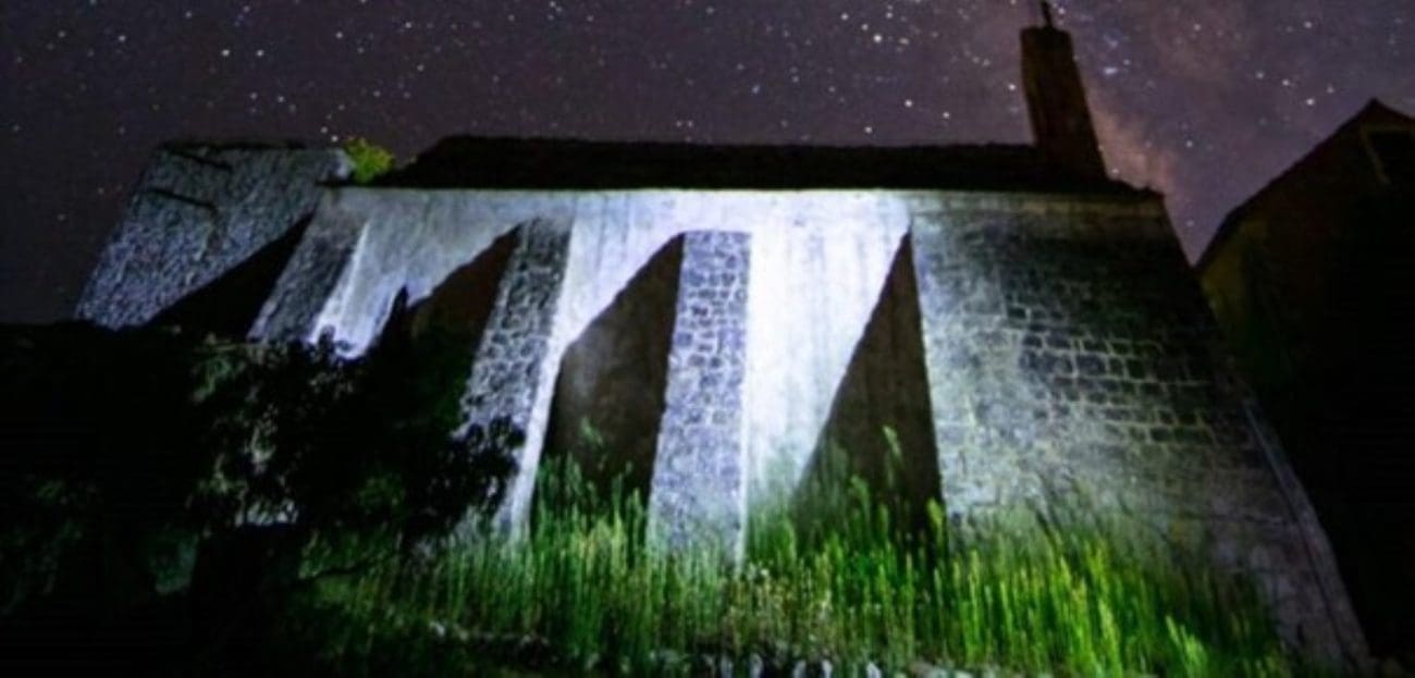 Crkva Sv. Silvestra pape na Biševu sa širokim kontraforima koji s vanjske strane podupiru zidove crkve, a dograđeni su vjerojatno u 16. stoljeću (od prvobitne crkve iz 11. stoljeća sačuvana je samo polukružna apsida sa središnjim prozorčićem)