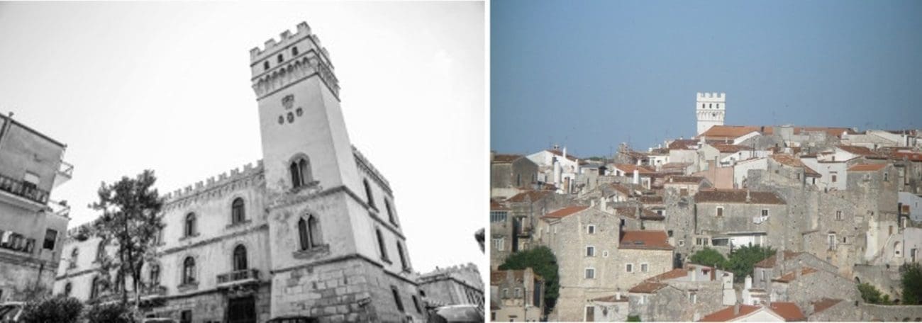 Neogotička palača obitelji Della Bella izgrađena početkom 20. stoljeća u mjestu Vico del Gargano na istoimenom poluotoku; Vizura mjesta (kojeg je prema mjesnoj legendi oko 970. utemeljio Sueripolo – „vođa Slavena“ s istočne obale Jadrana) s uočljivim tornjem palače Della Bella
