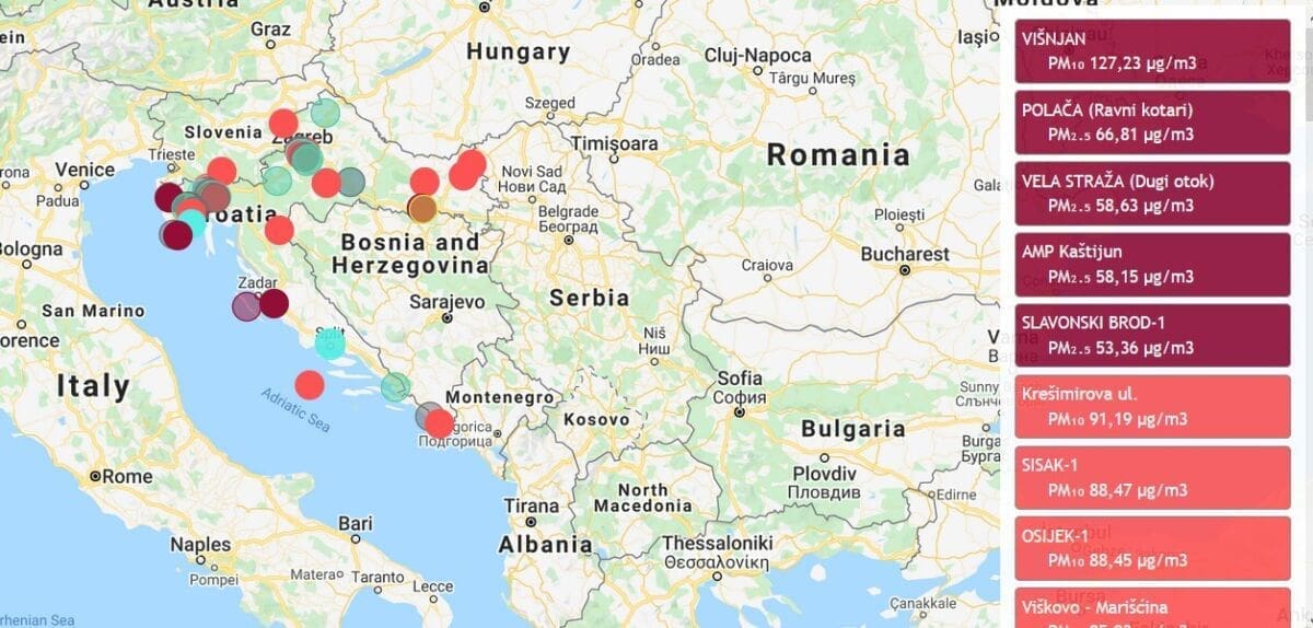 Zrak na području Republike Hrvatske je i dalje loše ili vrlo loše kvalitete, ali koncentracije lebdećih čestica PM10 i dalje su u blagom opadanju, objavljeno je u nedjelju 29. ožujka na službenim internetskim stranicama Nastavnog zavoda za javno zdravstvo „Dr. Andrija Štampar“.