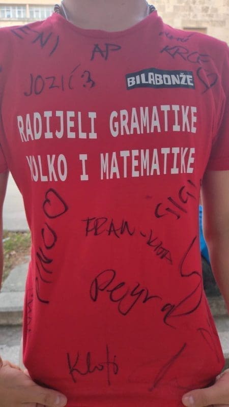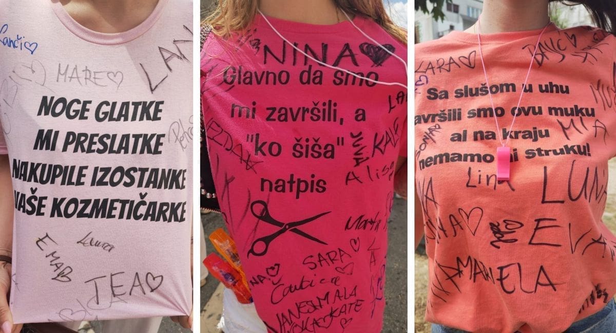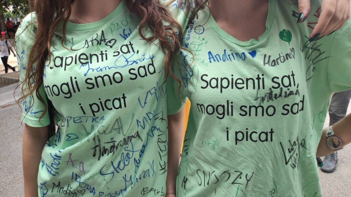 Slavilo se na svakom koraku u centru grada, palilo bengalke, pjevalo i plesalo. Neizostavne su i majice u bojama sa znakovitim porukama. Pogledajte u našoj galeriji što su sve poručili splitski i omiški maturanti.