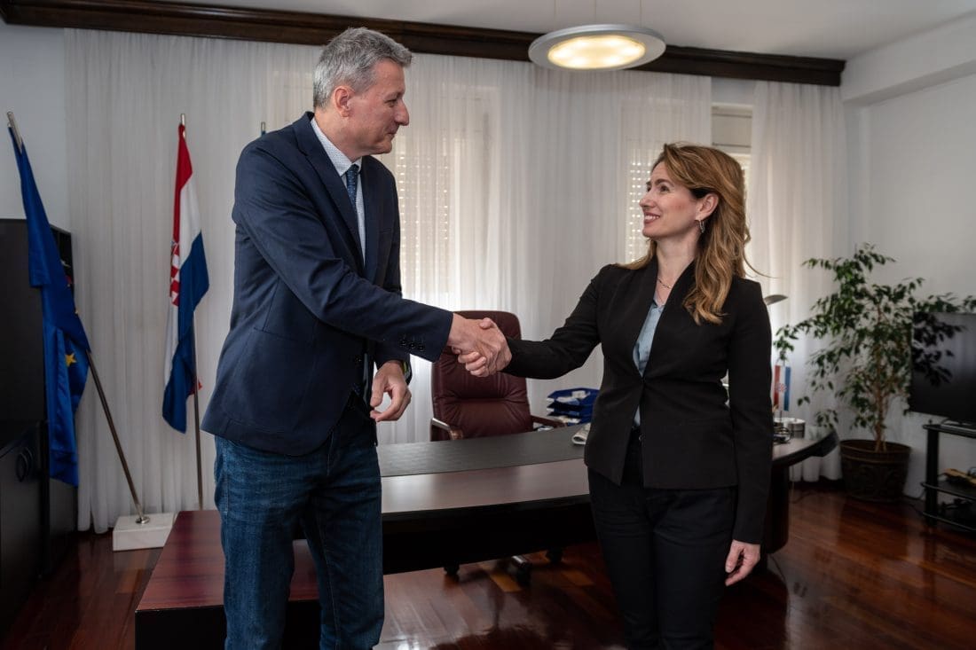 Radni sastanak s predsjednikom Gradskog vijeća Jakovom Prkićem bio je prva službena obveza povjerenice Vlade RH, Mirne Veže nakon što je jutros potpisala primopredajni akt o preuzimanju izviješća gradskih službi. Iako je Odluka o imenovanju u Narodnim novinama objavljena već u petak, Mirna Veža je danas i formalno stupila na dužnost Povjerenice Vlade Republike Hrvatske za Grad Split.