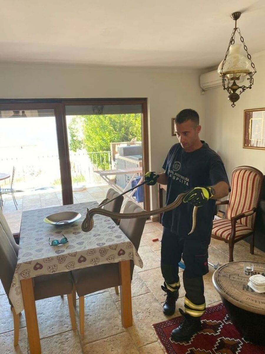 Zmija se nalazila pored kauča iza jastuka. Akcija hvatanja zmije trajala je kratko i intervencija je već bila i službeno završena u 14:17 sati.