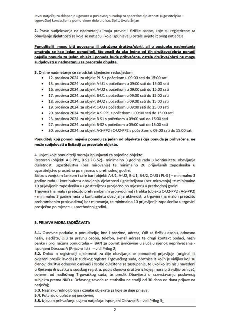 Kriterij za odabir najpovoljnije ponude je najviša ponuđena cijena godišnje naknade, a pravo sudjelovanja na nadmetanju imaju pravne i fizičke osobe pod uvjetom da imaju minimalno tri godine rada u kontinuitetu (bez mirovanja) u toj djelatnosti, te minimalno 20 prijavljenih zaposlenika prosječno po mjesecu u prethodnoj godini za restorane, odnosno 10 zaposlenika za bistroe, caffe bar, trgovinu i trafiku. Zanimljivo je da ponuditelj koji ponudi najvišu ponudu za jedan od objekata i čija ponuda bude prihvaćena, ne može sudjelovati u licitaciji za preostale objekte. Jamčevina za restorane je čak 50.000 eura, a za trgovine 20.000 eura. Početna cijena je 100.000 eura.