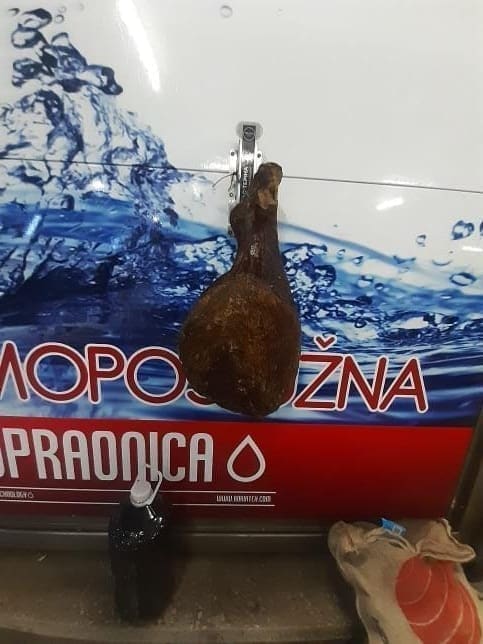 U autopraonicama ljudi obično peru automobile. No, ako ste u ponedjeljak navečer prolazili Solinom, u tamošnjoj autopraonici netko je oprao - pršut.