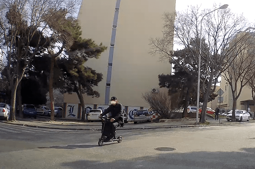 Popularna Facebook stranica objavila je zanimljivu sliku sa splitske ceste. Slika je nastala na Gripama, u blizini crkve sv. Petra, a na njoj se vidi muškarca s maskom preko lica kako vozi romobil.