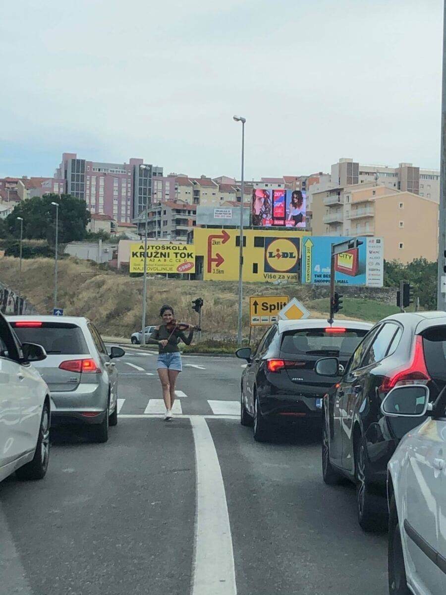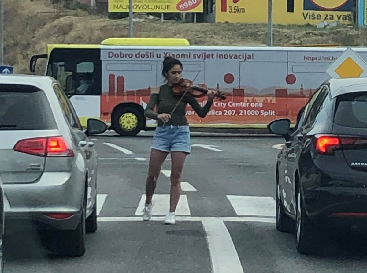 Novi slučaj "zabave" s ulice stiže nam s ulaza u Split. Kako nam javljaju čitatelji, u petak poslijepodne jedna je žena na pješačkom prijelazu svirala violinu. Dok je neke besplatni glazbeni nastup ugodno iznenadio, drugi nisu imali razumijevanja te su joj trubili.