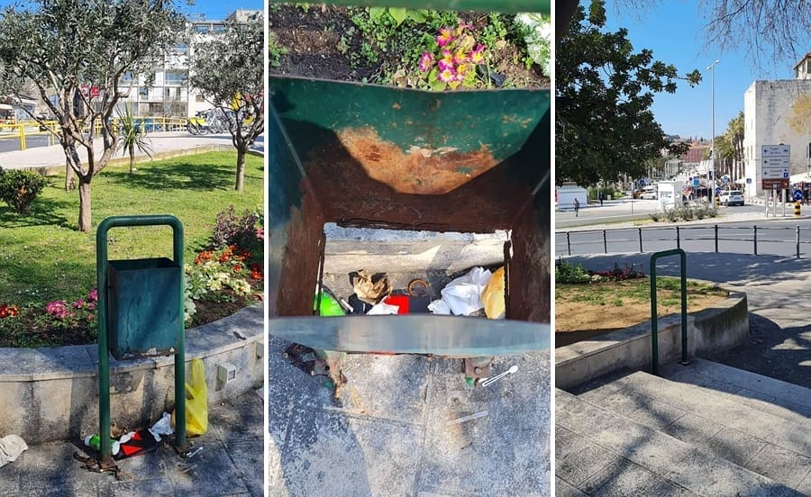 Da nemaju svrhu, uvjerili smo se i sami, jer je jedna od kanti toliko uništena da cjelokupna smeće iz nje ispada na ulicu.