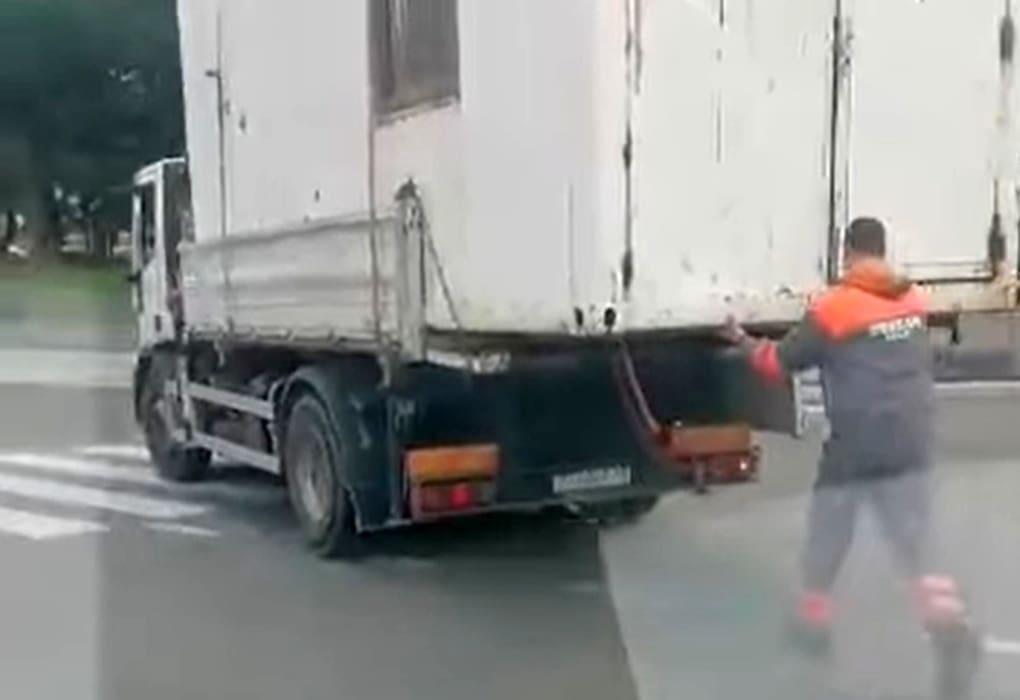 "Transport kontejnera u Splitu", stoji u opisu objavljenog videa na kojem se vidi kontejner natovaren na kamion. Ne bi tu bilo ništa posebno zanimljivo da kontejner ne gura muškarac u radnom odijelu i to dok je kamion u pokretu.