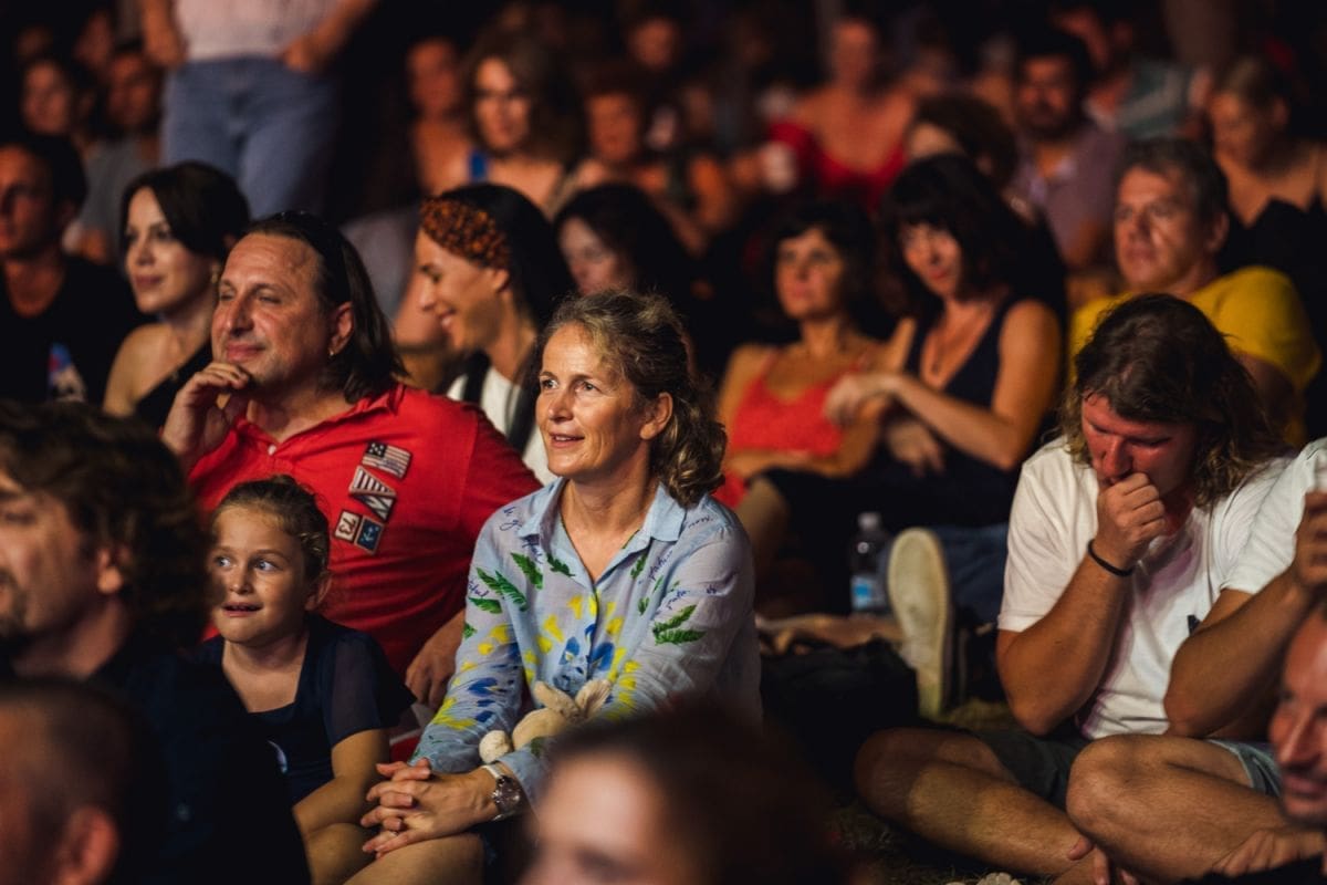 Više puta se zahvalila organizatorima, pitajući publiku je li im ugodno sjediti na podu na tim dekicama, kazavši da ne može pjevati sjedeći.