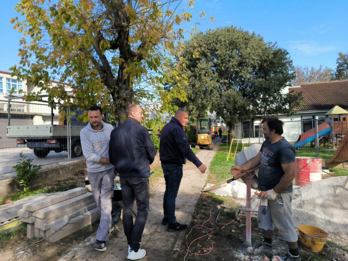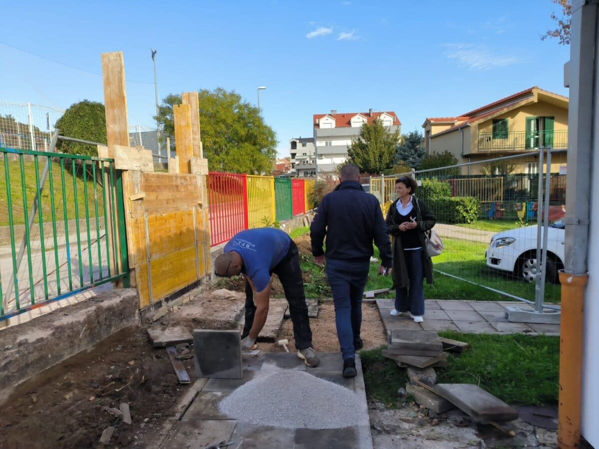 Gradonačelnik grada Sinja, Miro Bulj, njegov zamjenik, Denis Bobeta, u pratnji ravnateljice Dječjeg vrtića Bili cvitak, Mirjane Pavić, jučer su obišli radove na sanaciji ograde u Dječjem vrtiću Bili cvitak.