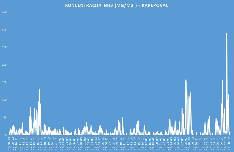 Rezultat intenziviranih radova je povremeno povećanje koncentracije plinova Karepovca. Prema javno dostupnim podacima o koncentraciji amonijaka u zraku, posljednja 24 sata došlo je do rekordnog povećanja koncentracije ovog plina na samom Karepovcu. Primjerice, sinoć je u 23 sata koncentracija iznosila 290,19 μg/m3. Ipak, ni s ovako povišenim satnim vrijednostima nije došlo do prekoračenja dnevnih vrijednosti. Prema Uredbi o graničnim vrijednostima onečišćujućih tvari u zraku, dozvoljena dnevna vrijednost je 100 µg/m3.
