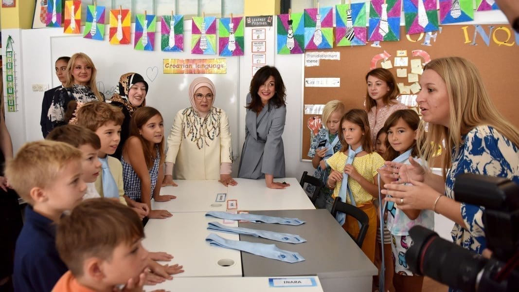Između ostalih aktivnosti, u sklopu programa supruge predsjednika su u pratnji ravnateljice Ljiljane Klinger, učiteljica i učenica i učenika obišle školu. Prezentiran im je rad škole koja provodi međunarodni IB (International Baccalaureate) program, a obišle su i školsku blagovaonicu gdje im je ukratko predstavljen jelovnik učenika uključujući i Halal prehranu. Učenici su demonstrirali vještinu vezivanja kravate kao jednog od hrvatskih identitetskih obilježja.