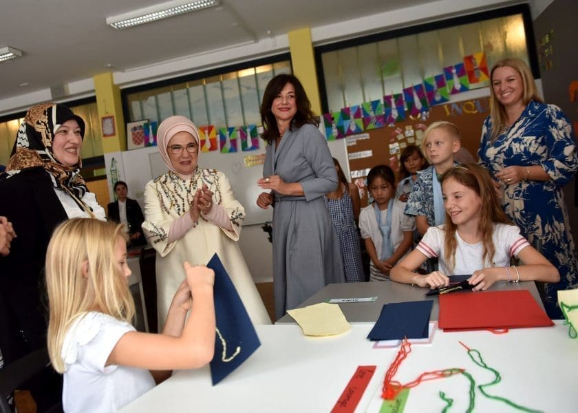 Supruga predsjednika Republike Hrvatske prof. dr. sc. Sanja Musić Milanović i supruga predsjednika Republike Turske Emina Erdoğan posjetile su danas zagrebačku Osnovnu školu Matije Gupca. Gospođa Erdogan boravi u Hrvatskoj u sklopu službenog posjeta Predsjednika Republike Turske Republici Hrvatskoj, Recepa Tayyipa Erdoğana.
