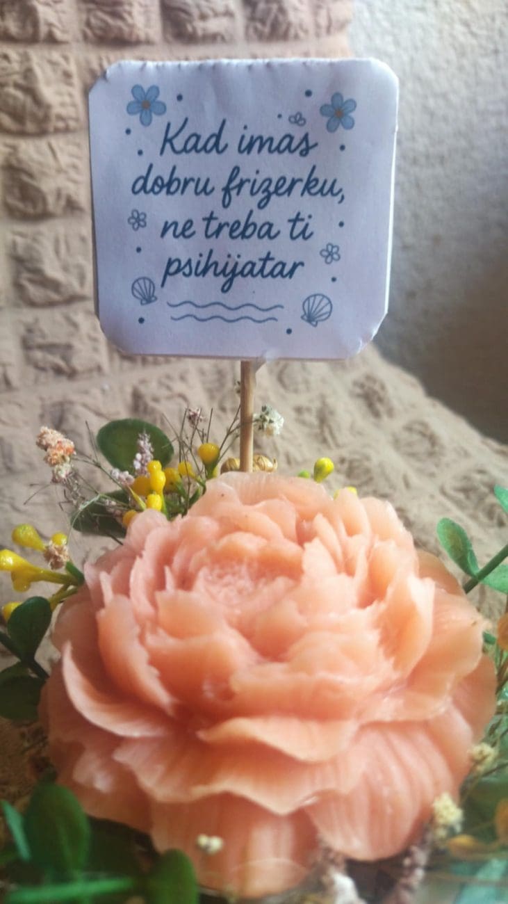 „S obzirom da sam dosta kreativna, volim unikatne poklone. Radila sam lutke od vune, "torte" od pelena, bukete od umjetnog cvijeća kombinirano s bombonima, što i sad paralelno radim uz bukete od sapuna. S obzirom da cvijeće obožavam oduvijek, slučajno sam vidjela na jednoj stranici na internetu, te me zaintrigiralo rekla sam, ovo želim probati. I tako je to krenulo“, priča nam na početku.