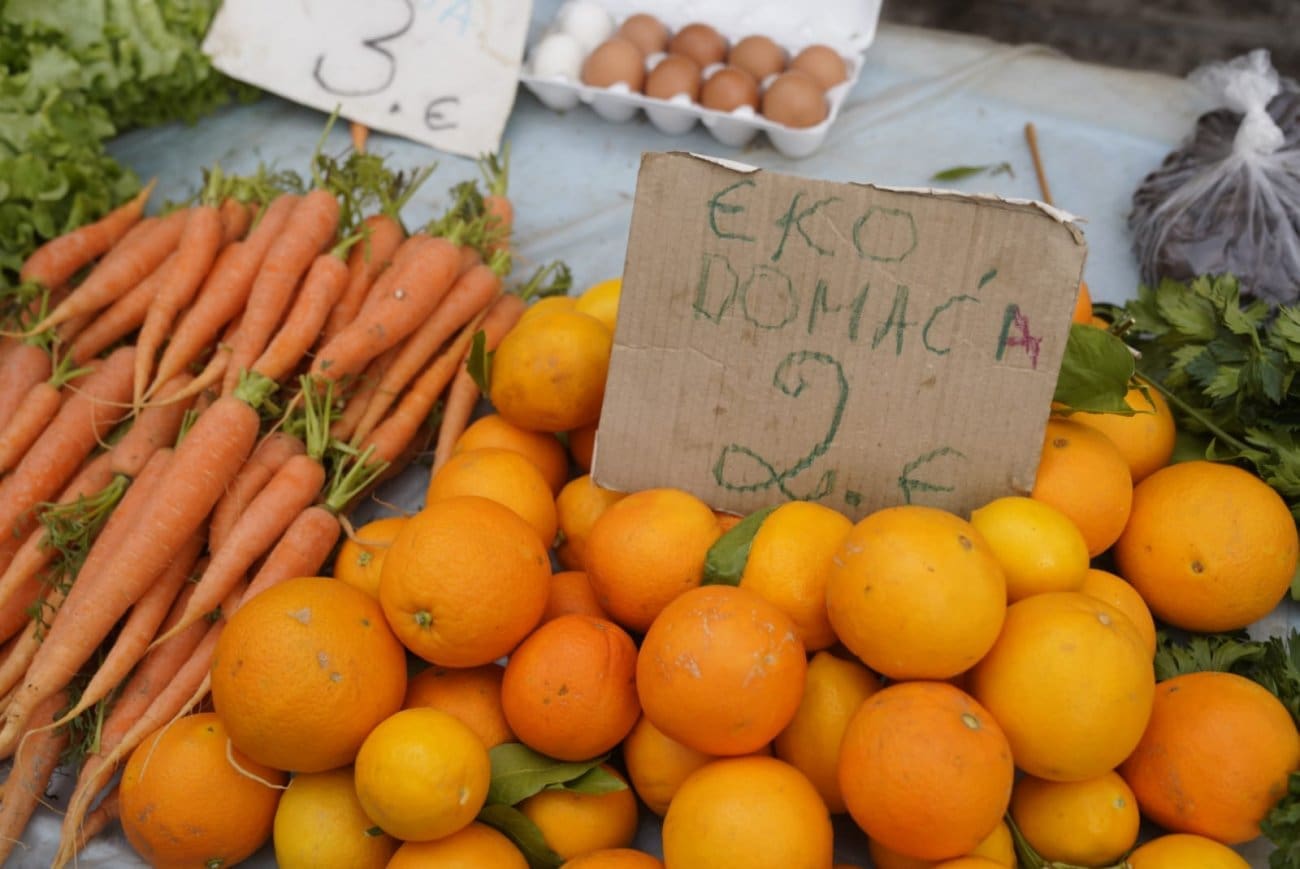 Za deset jaja triba izdvojit 3 eura, salata je, čini se na akciji. Po eurić, a donedavno je nije bilo ispod 3 eura. Krumpir se plaća od 1-2 eura. Naranče su po dva eura...