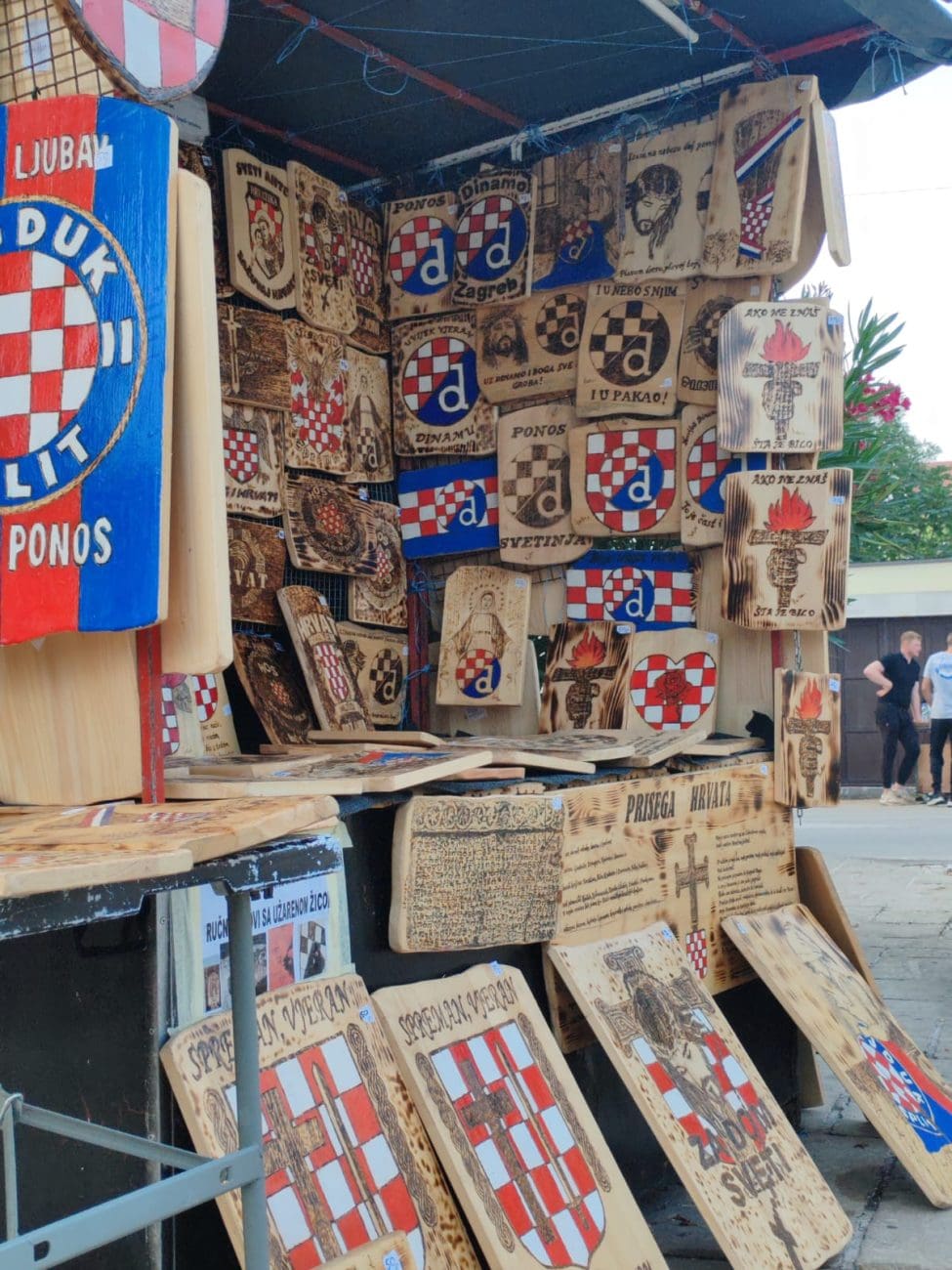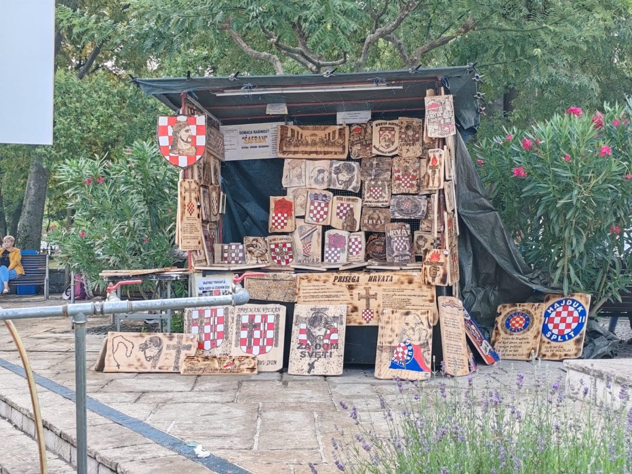 U blizini centra ističe se i jedan vrlo specifičan štand na kojem su, vješto i u domaćoj radinosti, oslikani domoljubni motivi. Tu se mogu pronaći razni prizori – od hrvatskih grbova i kraljeva, preko motiva Marka Perkovića Thompsona, pa sve do nogometnih navijačkih simbola, poput grba Hajduka i Dinama.