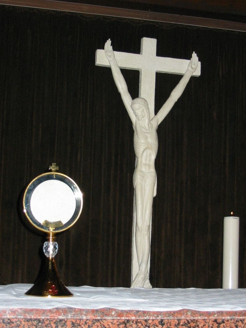 Crkva je obložena kamenom, a njezino značajno obilježje su vrata na pročelju koja je izradio majstor Režić iz Solina. Iznad ulaza nalazi se veliki brončani reljef, rad akademskog kipara Jure Žaje iz 1985. godine. Oltar i podnožje, oblikovani kao oktogon, izradio je Josip Župa, dok je tabernakul u obliku velike Uskrsne svijeće dar pape Ivana Pavla II., koji ga je blagoslovio 24. lipnja 1987..