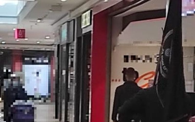 Naime, vjerojatno jedan od HOS-ovaca, trgovačkim centrom paradira sa velikom zastavom na kojoj je grb HOS-a sa ZDS.