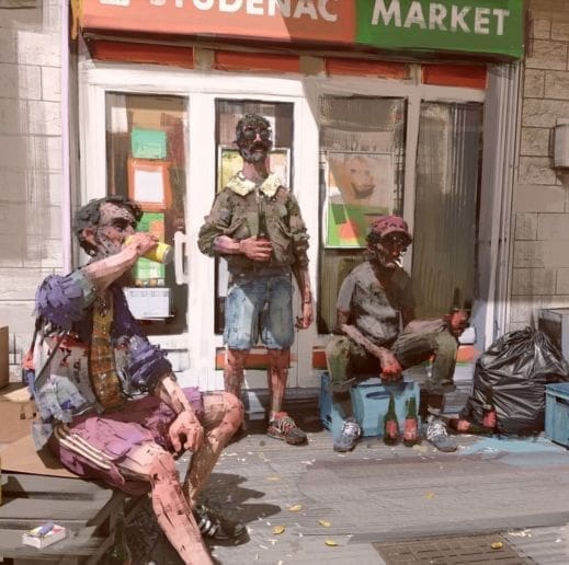 Tu su uobičajeni gradski prizori s lokalcima koji se zabavljaju na “zidiću” ispred dućana, navijači koji idu na gostovanje, slučajni prolaznici u vedutama modernističkih splitskih kvartova, samo su neke od scena koje će se moći pogledati kao projekcije na zidovima galerije, ali i u virtualnom svijetu, pomoću VR naočala. Vidjet ćemo klasične video loopove, ali i kompleksnije scenografije. Božo Balov autorski je sudjelovao u mnogim zapaženim projektima, a trenutno radi i na produkciji animiranog filma “U malu je uša đava”.